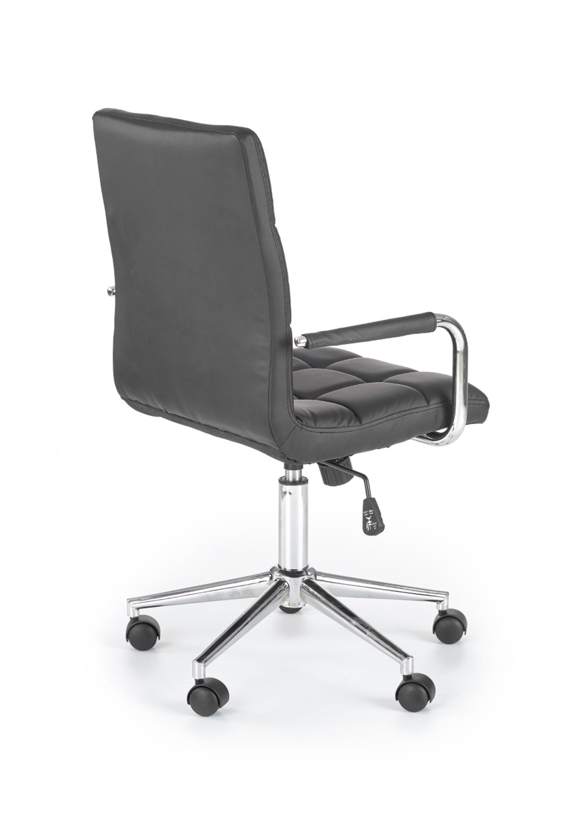 Fotel obrotowy GONZO 2 w kolorze czarnym to doskonały wybór dla osób, które cenią sobie wygodę oraz nowoczesny design w przestrzeni biurowej. Jego elegancki wygląd łączy w sobie funkcjonalność i styl, dzięki czemu stanie się zarówno efektownym, jak i praktycznym elementem wyposażenia Twojego wnętrza. Zastosowanie wysokiej jakości eco skóry gwarantuje trwałość oraz łatwość w utrzymaniu czystości, co jest kluczowe w intensywnie eksploatowanym otoczeniu, jakim jest biuro. Fotel wyposażony jest w mechanizm TILT, co pozwala na swobodne bujanie się oraz dostosowanie wysokości siedziska w zakresie 93 cm do 105 cm. Ergonomiczny kształt oraz odpowiednio wyprofilowane oparcie zapewniają komfort podczas długich godzin pracy, co przekłada się na zwiększenie wydajności. Dodatkowo, podłokietniki w chromowanej obudowie dodają stylu i wygody. Wymiary fotela to 53 cm szerokości, 60 cm głębokości oraz zmienna wysokość od 93 do 105 cm, co czyni go idealnym rozwiązaniem dla różnych użytkowników. Jego nowoczesny wygląd sprawia, że z łatwością wkomponuje się w każdego rodzaju aranżację, zarówno klasyczną, jak i minimalistyczną.