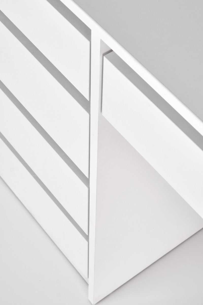 • Wysokiej Jakości Materiały: Wykonana z trwałej płyty meblowej okleinowanej w klasycznym białym kolorze, toaletka prezentuje się niezwykle estetycznie i nowocześnie. Biała barwa doskonale komponuje się z różnymi stylami wnętrz, dodając im lekkości i świeżości.
