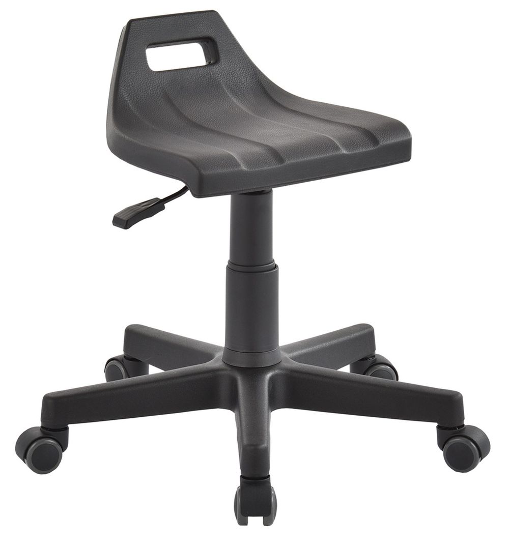 Krzesło laboratoryjne niskie Krzesło specjalistyczne o nowoczesnym kształcie, zostało wykonane z wysokiej jakości materiałów. Zastosowana pianka poliuretanowa na siedzisku i oparciu jest dużo grubsza , aniżeli w innych modelach krzeseł, co powoduje dużo wyższy komfort siedzenia. Wymiary szerokość/średnica/wysokość siedziska 46x42 cm (szer x wys); szerokość/średnica/wysokość oparcia 40x29 cm (szer x wys); wysokość siedziska: 44 cm - 58 cm; Wysokość maksymalna krzesła 102 cm; Kolorystyka: czarna. Podstawa Podstawa krzesła o średnicy 58 cm, wykonana została z poliamidu wzmacnianego włóknem szklanym. Mechanizm Regulację wysokości siedziska umożliwia podnośnik pneumatyczny o skoku 14 cm. Mechanizm CPT który łączy siedzisko z oparciem, umożliwia regulację kąta nachylenia oparcia do siedziska, pozwala podnosić oparcie, oraz dopasować odległość w jakiej znajduje się oparcie od siedziska. Uwaga Krzesło posiada atest PZH. Towar do samodzielnego montażu. Terminy Towar na zamówienie. Produkcja 1-14 dni roboczych.