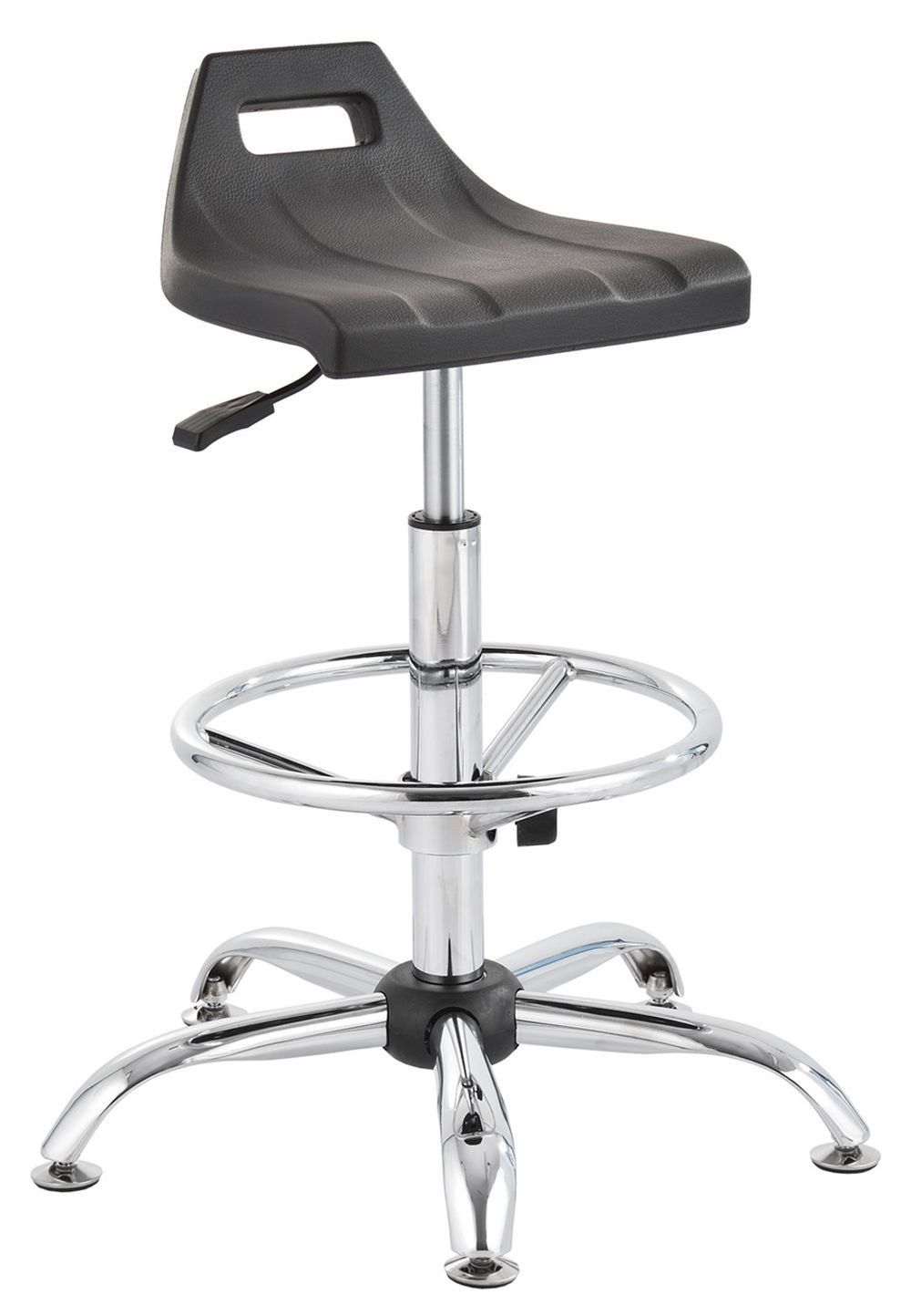 Krzesło laboratoryjne niskie Krzesło specjalistyczne o nowoczesnym kształcie, zostało wykonane z wysokiej jakości materiałów. Zastosowana pianka poliuretanowa na siedzisku i oparciu jest dużo grubsza , aniżeli w innych modelach krzeseł, co powoduje dużo wyższy komfort siedzenia. Wymiary szerokość/średnica/wysokość siedziska 46x42 cm (szer x wys); szerokość/średnica/wysokość oparcia 40x29 cm (szer x wys); wysokość siedziska: 44 cm - 58 cm; Wysokość maksymalna krzesła 102 cm; Kolorystyka: czarna. Podstawa Podstawa krzesła o średnicy 58 cm, wykonana została z poliamidu wzmacnianego włóknem szklanym. Mechanizm Regulację wysokości siedziska umożliwia podnośnik pneumatyczny o skoku 14 cm. Mechanizm CPT który łączy siedzisko z oparciem, umożliwia regulację kąta nachylenia oparcia do siedziska, pozwala podnosić oparcie, oraz dopasować odległość w jakiej znajduje się oparcie od siedziska. Uwaga Krzesło posiada atest PZH. Towar do samodzielnego montażu. Terminy Towar na zamówienie. Produkcja 1-14 dni roboczych.