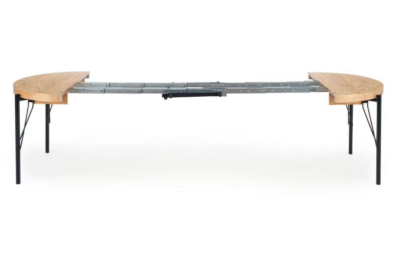 stół rozkładany, wymiary: 100-300/100/76 cm, materiał: MDF + okleina naturalna (dębowa) / stal malowana proszkowo, kolor: blat - dąb naturalny, nogi - czarny