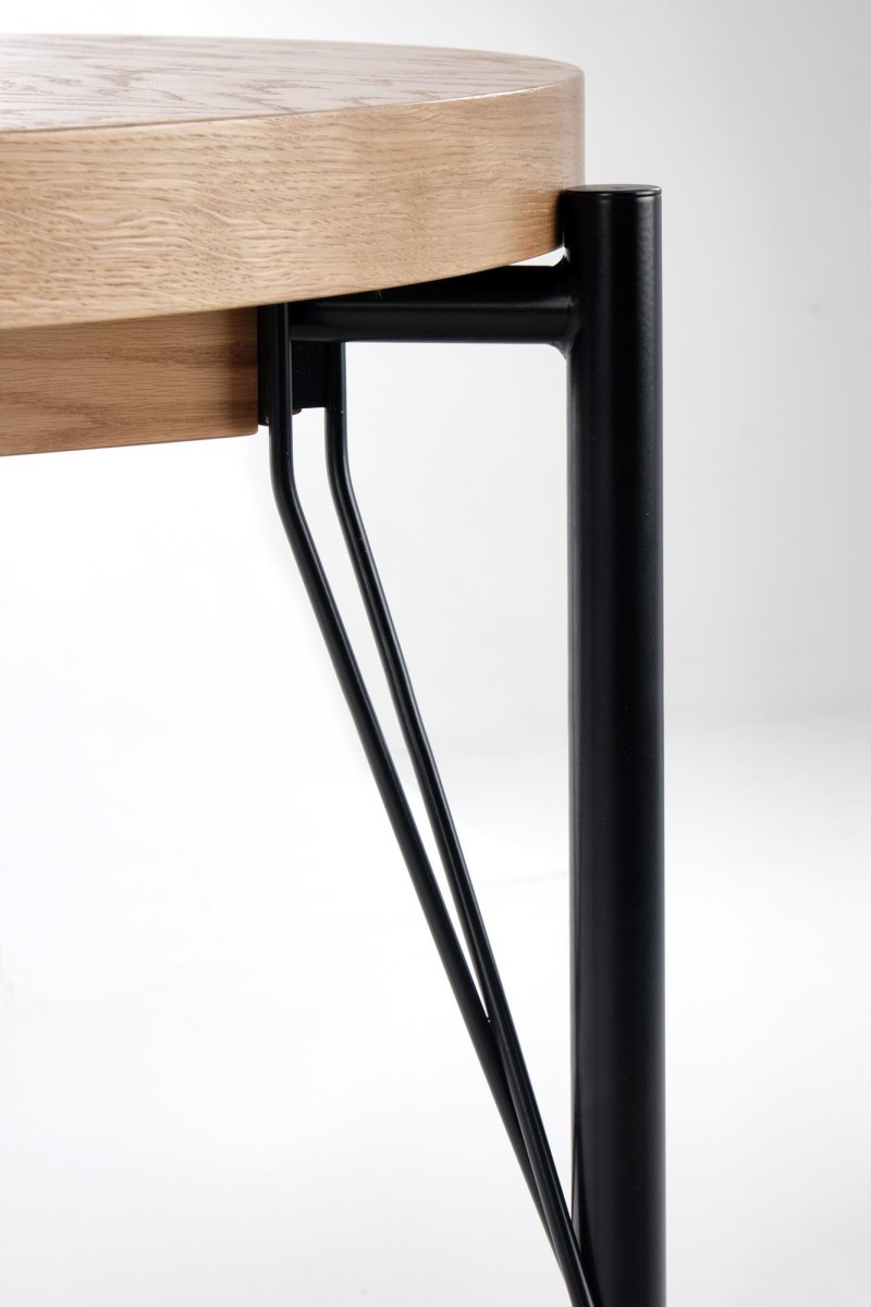 KARIDA-S ława dąb naturalny/czarny Wprowadź do swojego wnętrza nowoczesny akcent dzięki ławie KARIDA-S, która łączy w sobie elegancję oraz funkcjonalność. Jej wyjątkowy design oraz solidne wykonanie sprawiają, że stanie się centralnym punktem każdego pomieszczenia. Idealna do salonu, sypialni, czy nawet biura, ława ta zachwyca nie tylko estetyką, ale także praktycznością. Wymiary: Średnica 45 cm, wysokość 49 cm - idealna do mniejszych przestrzeni. Materiał: Wykonana z wytrzymałego MDF z naturalną okleiną, co zapewnia jej wyjątkową trwałość oraz estetyczny wygląd. Nogi: Stabilna konstrukcja ze stali malowanej proszkowo w kolorze czarnym, co dodaje nowoczesności. Kolor: Połączenie naturalnego dębu z czernią, które doskonale wpisuje się w różne style aranżacyjne. Styl: Minimalistyczny i elegancki design, który doda charakteru każdemu wnętrzu. Ława KARIDA-S to także idealne miejsce na Twoje ulubione napoje, książki czy dekoracje. Jej kompaktowy rozmiar pozwala na wygodne umiejscowienie w różnych aranżacjach. Dzięki sieci kowalskiej konstrukcji, będzie stabilnym i solidnym meblem przez długie lata. Gwarancja producenta: 24 miesiące. Samodzielny montaż: Ława dostarczana jest z instrukcją, co ułatwia szybki i łatwy montaż. wymiary: fi 45/49 cm, materiał: MDF + okleina naturalna / stal, malowana proszkowo kolor: dąb naturalny - czarny