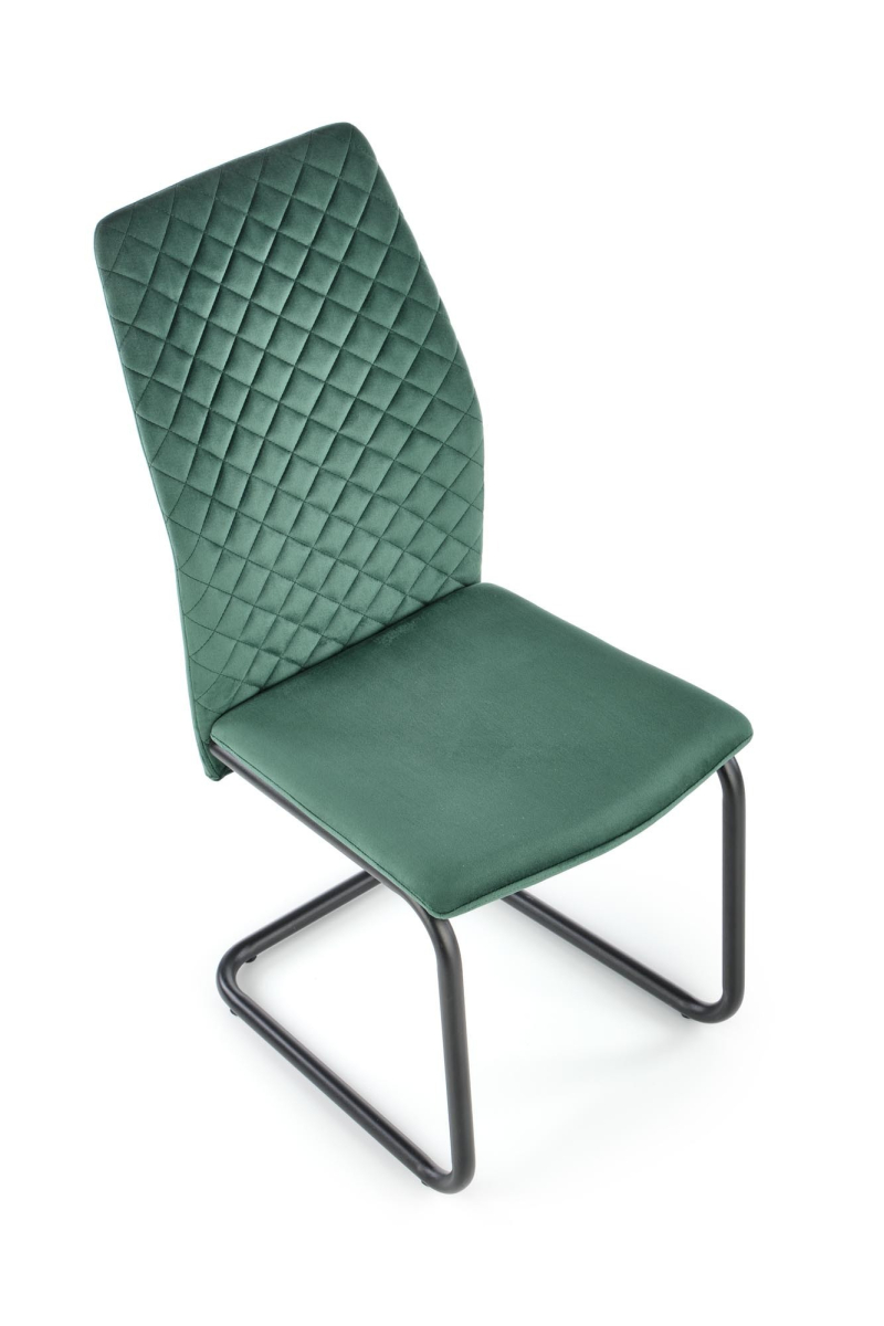Krzesło K444 w kolorze zielonym to doskonały wybór dla tych, którzy cenią sobie nie tylko estetykę, ale i wygodę. Dzięki zastosowaniu tkaniny velvet oraz stalowej konstrukcji malowanej proszkowo, krzesło łączy elegancję z nowoczesnym stylem, nadając wyjątkowego charakteru każdemu wnętrzu.