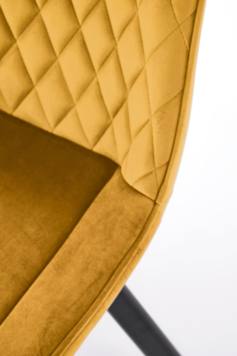 Odkryj nową jakość komfortu i stylu dzięki krzesłu K520, które zachwyca nie tylko nowoczesnym designem, ale także funkcjonalnością. Jego ergonomiczny kształt sprawia, że idealnie dopasowuje się do ciała, zapewniając maksymalny komfort podczas codziennego użytkowania. Wyróżniające się musztardowe siedzisko wykonane z tkaniny velvet w kolorze BLUVEL 68 oraz stalowe nogi w kolorze czarnym nadają krzesłu niepowtarzalnego charakteru.