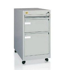 OPIS: | Trzyszufladowy kontener przybiurkowy na kółkach wyposażony jest w piórnik oraz dwie szuflady. Jedna z szuflad przystosowana jest do przechowywania teczek zawieszkowych formatu A4. Wykonany jest z blachy czarnej o grubości 0,6 - 2 mm, malowana farbami proszkowymi (epoksydowo-poliestrowymi). Szuflady przesuwają się po prowadnicach teleskopowych z blokadą zabezpieczającą przed wypadnięciem. Całość zamykana jednym centralnym zamkiem. Kontener posiada blokadę pozwalającą na wysunięcie tylko jednej szuflady, co zachowuje stabilność kontenera. | |