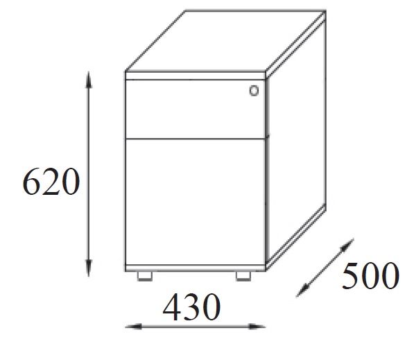 OPIS TECHNICZNY: | Kontener mobilny bezuchwytowy wykonany z płyty obustronnie laminowanej o podwyższonej trwałości. |
