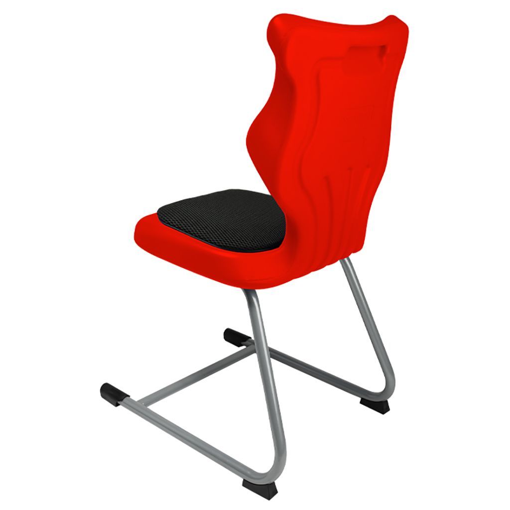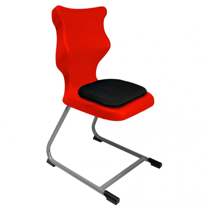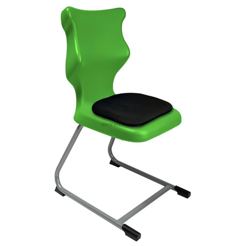 Krzesło szkolne Spider soft nr 1 Dobre krzesło Entelo Krzesła w rozmiarach od 1- 4 wymagają biurek (stolików) o odpowiedniej wysokości blatu. Krzesło szkolne profilowane przeznaczone dla dzieci i młodzieży. Oferowane przez naszą firmę krzesło ucznia jest specjalnie przygotowaną ofertą w porozumieniu z ze specjalistami w zakresie postawy dziecka, tak aby było krzesłem ergonomicznym i idealnie dopasowanym do sylwetki "młodego kręgosłupa". Dobre krzesło to produkt profilaktyczny, który poprzez wyprofilowanie lordozy lędźwiowej wymusza obciążenie guzów kulszowych. Prawidłowe ustawienie miednicy jest podstawą do prawidłowego ustawienia górnych segmentów kręgosłupa. Jest ono odpowiedzią na poszerzającą się w szybkim tempie grupę dzieci i młodzieży z wadami postawy, które wpływają na stan zdrowia i sprawność fizyczną młodego pokolenia. Kubełek Krzesło wyprodukowane w technologii rozdmuchu, umożliwiającej powstanie tzw. płaszcza termicznego. Kubełek: wykonany z tworzywa (polietylen wysokociśnieninowy). Model posiada miękkie tapicerowane siedzisko w kolorze czarnym. Z tyłu siedziska umieszczono uchwyt do szybkiego przenoszenia krzesła. Kolorystyka kubełka do wyboru w "Konfiguratorze Modelu". Dostępne kolory: Dostępne 4 nowe kolory kubełków: Stelaż Pająk. Malowany proszkowo na kolor szary. Stelaż o średnicy 22 mm. Stopki antypoślizgowe: -białe (tworzywo sztuczne). Wymiary Rozmiar nr 1: Wzrost dziecka: 93 cm - 116 cm Wysokość siedziska: 26 cm Głębokość siedziska: 26 cm Szerokość siedziska: 29 cm Wysokość oparcia: 30 cm Terminy Towar na zamówienie. Czas produkcji do 8 tygodni. Gwarancja Gwarancja 24-miesięczna. Kolekcja Spider posiada certyfikat potwierdzający zgodność z normą PN-EN 1729-1:2016-02, PN-EN 1729-2+A1:2016-02. Krzesło posiada Atest Higieniczny. 10 różnic pomiędzy Dobrym Krzesłem, a tradycyjnym produktem: 1. Wklęsło-wypukła forma krzesła – rozwiązanie wspomaga prawidłowe ułożenie kręgosłupa. 2. Optymalne krzywizny oparcia (kąt zgodny z normą PN-EN 1729 -1:2007) - mobilizują pracę mięśni przykręgosłupowych, wzmacniając kręgosłup. 3. Odpowiednio wyprofilowane siedzisko – wykonanie zgodnie z zasadami ergonomii zapewnia użytkownikowi maksimum komfortu, stymuluje tułów do prawidłowego ułożenia. 4. Struktura krzesła - zmniejsza odbicia sztucznego oświetlenia. 5. Komfort termiczny – innowacyjna technologia wytwarzania umożliwia powstanie płaszcza termicznego pomiędzy dwoma płaszczyznami krzesła, zapewniając komfort dla pleców i pośladków. 6. Elastyczność (która powoduje „dynamiczny” siad – wymóg współczesnej ergonomii) oraz brak ostrych krawędzi. 7. Łatwość utrzymania siedziska w czystości - jego powierzchnia nie elektryzuje się. 8. Duża wytrzymałość - osiągnięta dzięki unikalnej technologii wytwarzania - zapewnia wielokrotnie dłuższy czas użytkowania. 9. Wysoka stabilność – uzyskana z połączenia doświadczeń specjalistów z zakresu ergonomii i rehabilitacji ruchowej. 10. Przyjazne środowisku - w pełni nadaje się do ponownego przetworzenia – tradycyjne krzesła nie nadają się do recyklingu. Ergonomia krzesła dla ucznia: zapoznaj się klikając na poniższe zdjęcie
