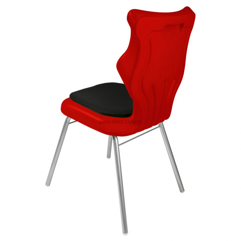 Krzesło szkolne Spider soft nr 1 Dobre krzesło Entelo Krzesła w rozmiarach od 1- 4 wymagają biurek (stolików) o odpowiedniej wysokości blatu. Krzesło szkolne profilowane przeznaczone dla dzieci i młodzieży. Oferowane przez naszą firmę krzesło ucznia jest specjalnie przygotowaną ofertą w porozumieniu z ze specjalistami w zakresie postawy dziecka, tak aby było krzesłem ergonomicznym i idealnie dopasowanym do sylwetki "młodego kręgosłupa". Dobre krzesło to produkt profilaktyczny, który poprzez wyprofilowanie lordozy lędźwiowej wymusza obciążenie guzów kulszowych. Prawidłowe ustawienie miednicy jest podstawą do prawidłowego ustawienia górnych segmentów kręgosłupa. Jest ono odpowiedzią na poszerzającą się w szybkim tempie grupę dzieci i młodzieży z wadami postawy, które wpływają na stan zdrowia i sprawność fizyczną młodego pokolenia. Kubełek Krzesło wyprodukowane w technologii rozdmuchu, umożliwiającej powstanie tzw. płaszcza termicznego. Kubełek: wykonany z tworzywa (polietylen wysokociśnieninowy). Model posiada miękkie tapicerowane siedzisko w kolorze czarnym. Z tyłu siedziska umieszczono uchwyt do szybkiego przenoszenia krzesła. Kolorystyka kubełka do wyboru w "Konfiguratorze Modelu". Dostępne kolory: Dostępne 4 nowe kolory kubełków: Stelaż Pająk. Malowany proszkowo na kolor szary. Stelaż o średnicy 22 mm. Stopki antypoślizgowe: -białe (tworzywo sztuczne). Wymiary Rozmiar nr 1: Wzrost dziecka: 93 cm - 116 cm Wysokość siedziska: 26 cm Głębokość siedziska: 26 cm Szerokość siedziska: 29 cm Wysokość oparcia: 30 cm Terminy Towar na zamówienie. Czas produkcji do 8 tygodni. Gwarancja Gwarancja 24-miesięczna. Kolekcja Spider posiada certyfikat potwierdzający zgodność z normą PN-EN 1729-1:2016-02, PN-EN 1729-2+A1:2016-02. Krzesło posiada Atest Higieniczny. 10 różnic pomiędzy Dobrym Krzesłem, a tradycyjnym produktem: 1. Wklęsło-wypukła forma krzesła – rozwiązanie wspomaga prawidłowe ułożenie kręgosłupa. 2. Optymalne krzywizny oparcia (kąt zgodny z normą PN-EN 1729 -1:2007) - mobilizują pracę mięśni przykręgosłupowych, wzmacniając kręgosłup. 3. Odpowiednio wyprofilowane siedzisko – wykonanie zgodnie z zasadami ergonomii zapewnia użytkownikowi maksimum komfortu, stymuluje tułów do prawidłowego ułożenia. 4. Struktura krzesła - zmniejsza odbicia sztucznego oświetlenia. 5. Komfort termiczny – innowacyjna technologia wytwarzania umożliwia powstanie płaszcza termicznego pomiędzy dwoma płaszczyznami krzesła, zapewniając komfort dla pleców i pośladków. 6. Elastyczność (która powoduje „dynamiczny” siad – wymóg współczesnej ergonomii) oraz brak ostrych krawędzi. 7. Łatwość utrzymania siedziska w czystości - jego powierzchnia nie elektryzuje się. 8. Duża wytrzymałość - osiągnięta dzięki unikalnej technologii wytwarzania - zapewnia wielokrotnie dłuższy czas użytkowania. 9. Wysoka stabilność – uzyskana z połączenia doświadczeń specjalistów z zakresu ergonomii i rehabilitacji ruchowej. 10. Przyjazne środowisku - w pełni nadaje się do ponownego przetworzenia – tradycyjne krzesła nie nadają się do recyklingu. Ergonomia krzesła dla ucznia: zapoznaj się klikając na poniższe zdjęcie