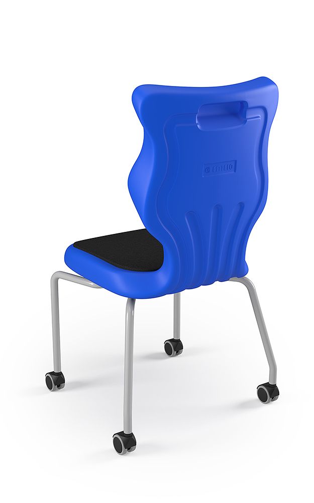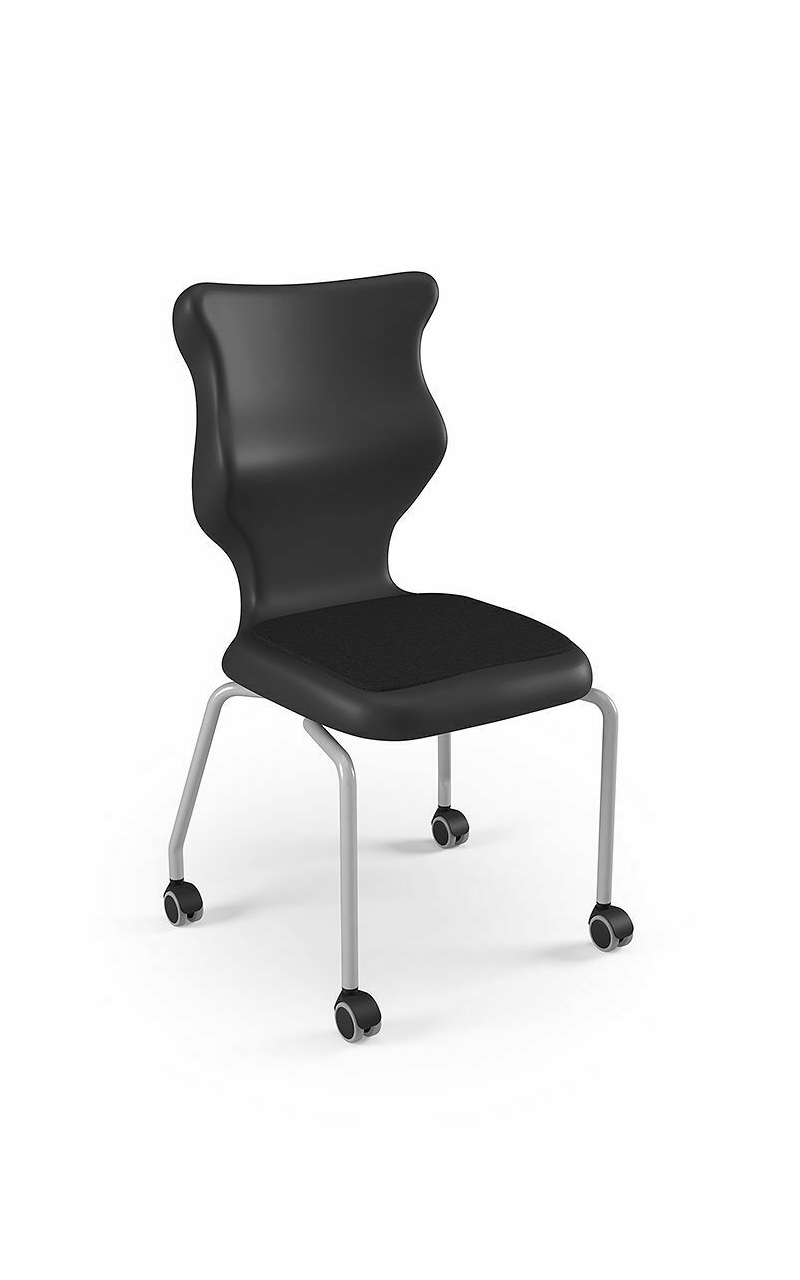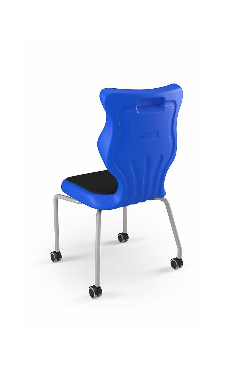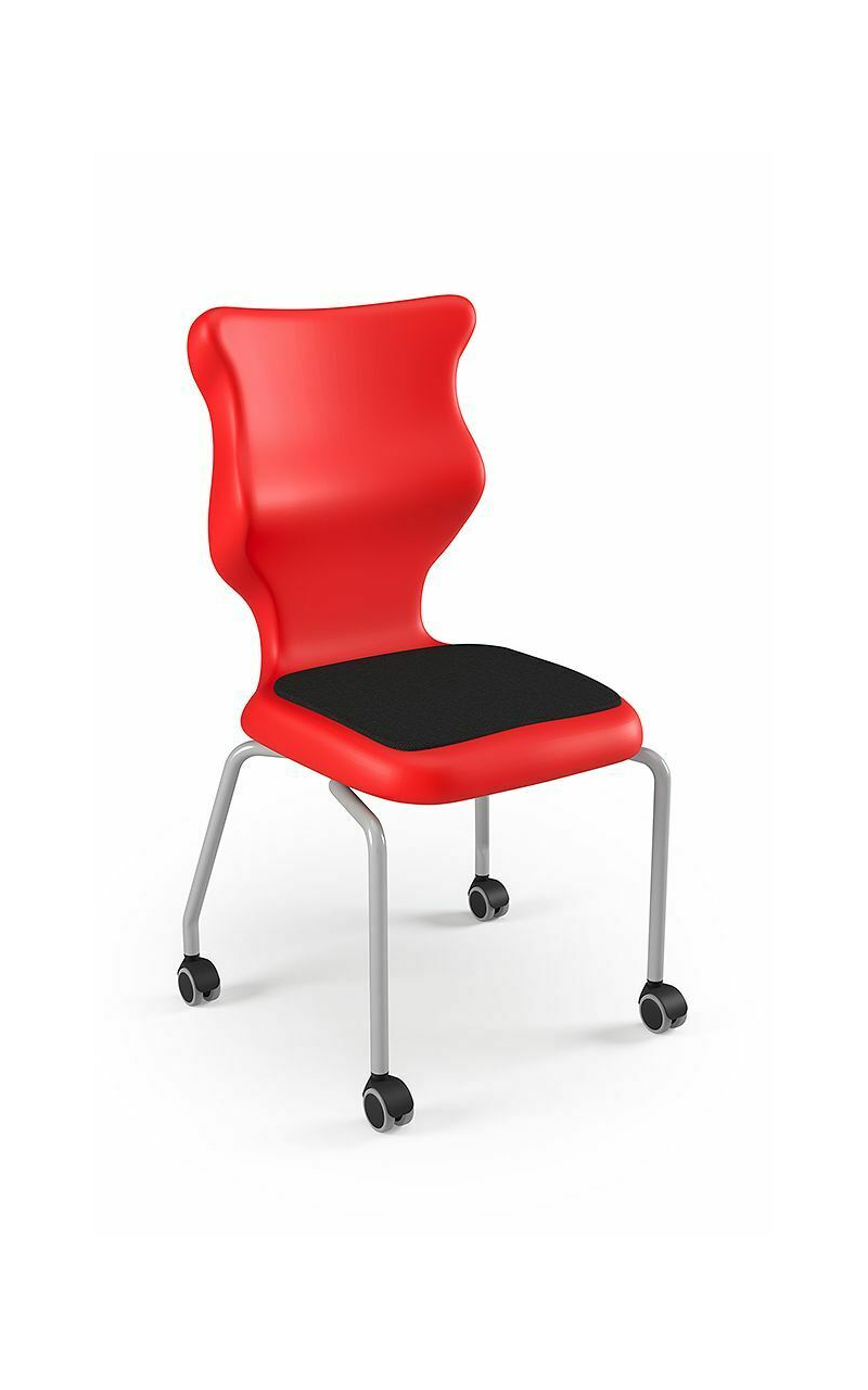 Krzesło szkolne Spider soft nr 1 Dobre krzesło Entelo Krzesła w rozmiarach od 1- 4 wymagają biurek (stolików) o odpowiedniej wysokości blatu. Krzesło szkolne profilowane przeznaczone dla dzieci i młodzieży. Oferowane przez naszą firmę krzesło ucznia jest specjalnie przygotowaną ofertą w porozumieniu z ze specjalistami w zakresie postawy dziecka, tak aby było krzesłem ergonomicznym i idealnie dopasowanym do sylwetki "młodego kręgosłupa". Dobre krzesło to produkt profilaktyczny, który poprzez wyprofilowanie lordozy lędźwiowej wymusza obciążenie guzów kulszowych. Prawidłowe ustawienie miednicy jest podstawą do prawidłowego ustawienia górnych segmentów kręgosłupa. Jest ono odpowiedzią na poszerzającą się w szybkim tempie grupę dzieci i młodzieży z wadami postawy, które wpływają na stan zdrowia i sprawność fizyczną młodego pokolenia. Kubełek Krzesło wyprodukowane w technologii rozdmuchu, umożliwiającej powstanie tzw. płaszcza termicznego. Kubełek: wykonany z tworzywa (polietylen wysokociśnieninowy). Model posiada miękkie tapicerowane siedzisko w kolorze czarnym. Z tyłu siedziska umieszczono uchwyt do szybkiego przenoszenia krzesła. Kolorystyka kubełka do wyboru w "Konfiguratorze Modelu". Dostępne kolory: Dostępne 4 nowe kolory kubełków: Stelaż Pająk. Malowany proszkowo na kolor szary. Stelaż o średnicy 22 mm. Stopki antypoślizgowe: -białe (tworzywo sztuczne). Wymiary Rozmiar nr 1: Wzrost dziecka: 93 cm - 116 cm Wysokość siedziska: 26 cm Głębokość siedziska: 26 cm Szerokość siedziska: 29 cm Wysokość oparcia: 30 cm Terminy Towar na zamówienie. Czas produkcji do 8 tygodni. Gwarancja Gwarancja 24-miesięczna. Kolekcja Spider posiada certyfikat potwierdzający zgodność z normą PN-EN 1729-1:2016-02, PN-EN 1729-2+A1:2016-02. Krzesło posiada Atest Higieniczny. 10 różnic pomiędzy Dobrym Krzesłem, a tradycyjnym produktem: 1. Wklęsło-wypukła forma krzesła – rozwiązanie wspomaga prawidłowe ułożenie kręgosłupa. 2. Optymalne krzywizny oparcia (kąt zgodny z normą PN-EN 1729 -1:2007) - mobilizują pracę mięśni przykręgosłupowych, wzmacniając kręgosłup. 3. Odpowiednio wyprofilowane siedzisko – wykonanie zgodnie z zasadami ergonomii zapewnia użytkownikowi maksimum komfortu, stymuluje tułów do prawidłowego ułożenia. 4. Struktura krzesła - zmniejsza odbicia sztucznego oświetlenia. 5. Komfort termiczny – innowacyjna technologia wytwarzania umożliwia powstanie płaszcza termicznego pomiędzy dwoma płaszczyznami krzesła, zapewniając komfort dla pleców i pośladków. 6. Elastyczność (która powoduje „dynamiczny” siad – wymóg współczesnej ergonomii) oraz brak ostrych krawędzi. 7. Łatwość utrzymania siedziska w czystości - jego powierzchnia nie elektryzuje się. 8. Duża wytrzymałość - osiągnięta dzięki unikalnej technologii wytwarzania - zapewnia wielokrotnie dłuższy czas użytkowania. 9. Wysoka stabilność – uzyskana z połączenia doświadczeń specjalistów z zakresu ergonomii i rehabilitacji ruchowej. 10. Przyjazne środowisku - w pełni nadaje się do ponownego przetworzenia – tradycyjne krzesła nie nadają się do recyklingu. Ergonomia krzesła dla ucznia: zapoznaj się klikając na poniższe zdjęcie