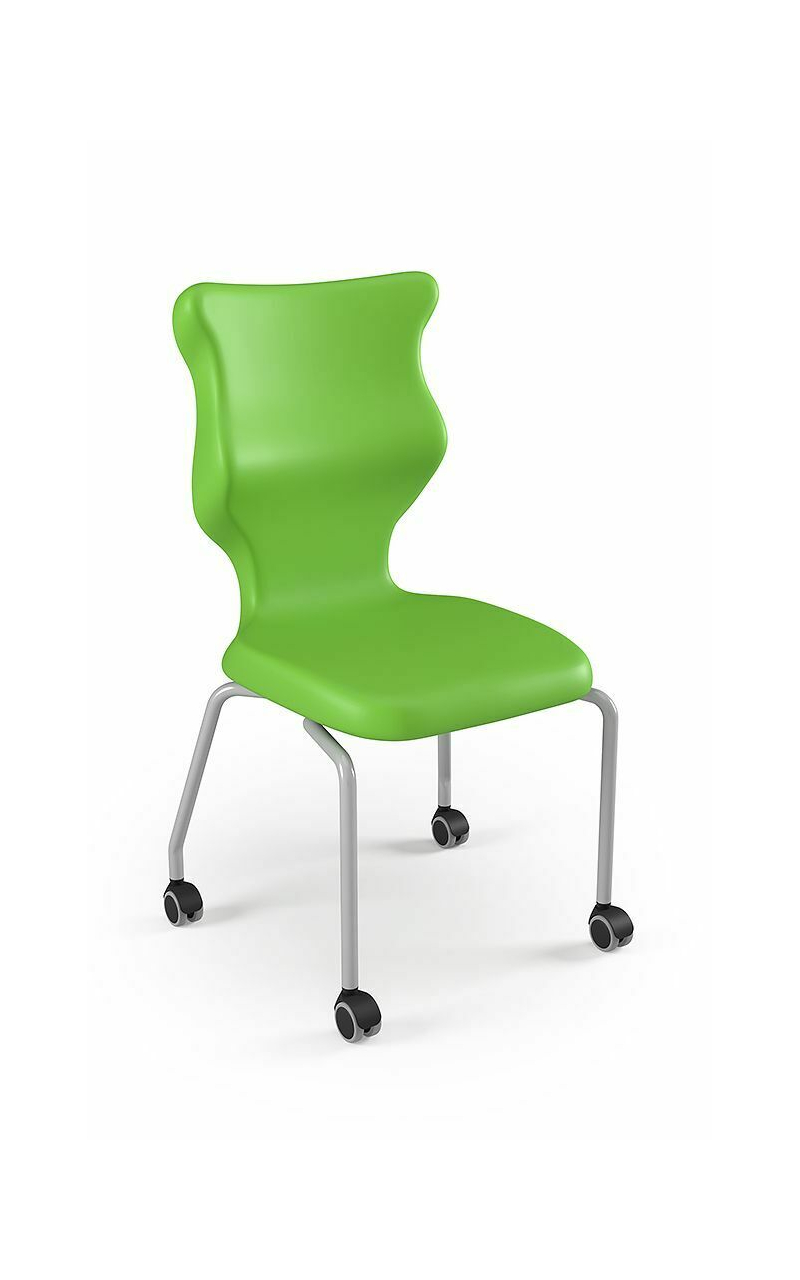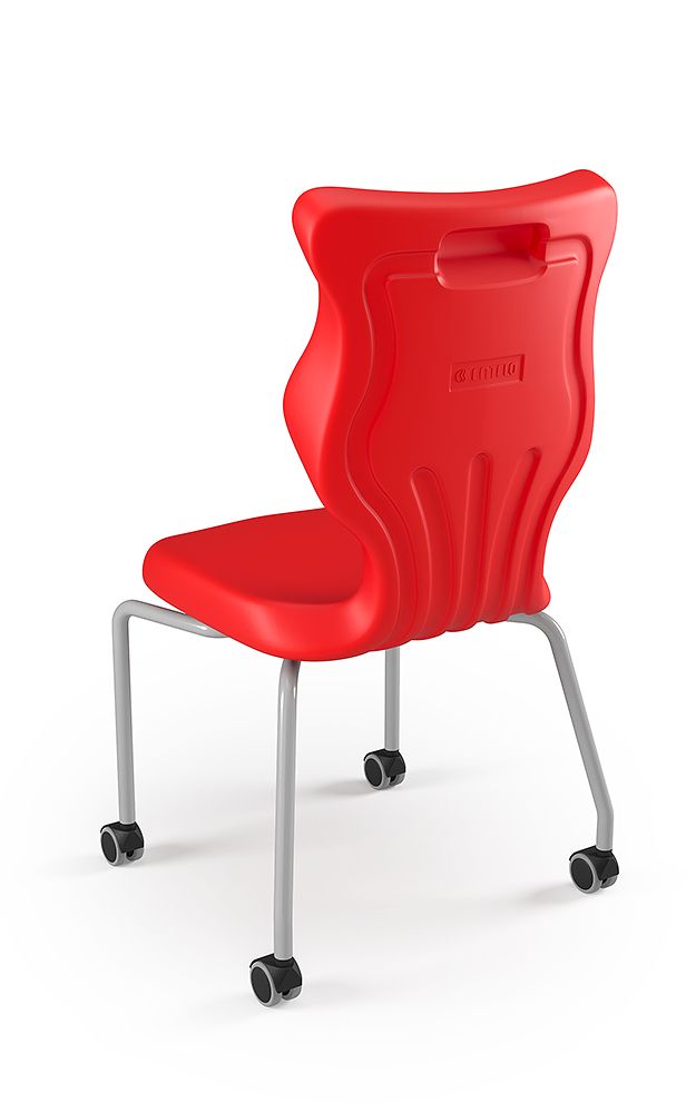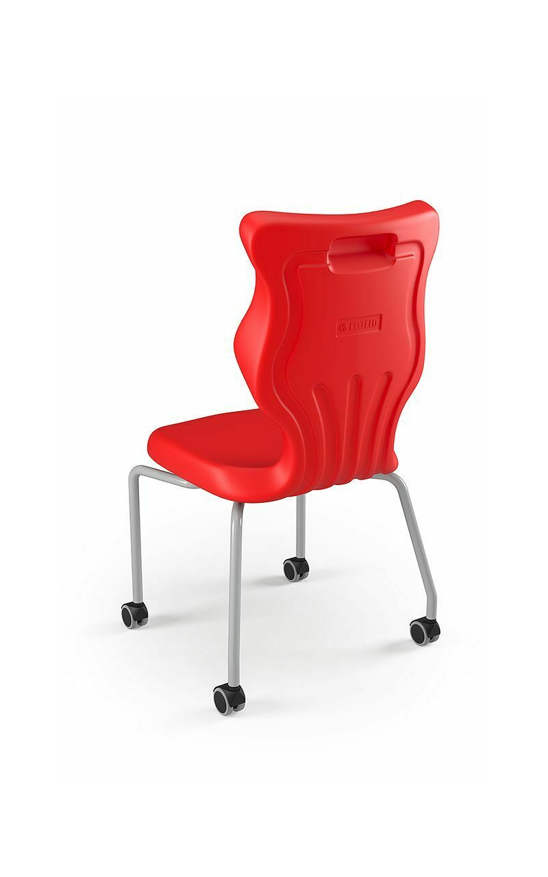 Krzesło szkolne Spider soft nr 2 Dobre krzesło Entelo Krzesła w rozmiarach od 1- 4 wymagają biurek (stolików) o odpowiedniej wysokości blatu. Krzesło szkolne profilowane przeznaczone dla dzieci i młodzieży. Oferowane przez naszą firmę krzesło ucznia jest specjalnie przygotowaną ofertą w porozumieniu z ze specjalistami w zakresie postawy dziecka, tak aby było krzesłem ergonomicznym i idealnie dopasowanym do sylwetki "młodego kręgosłupa". Dobre krzesło to produkt profilaktyczny, który poprzez wyprofilowanie lordozy lędźwiowej wymusza obciążenie guzów kulszowych. Prawidłowe ustawienie miednicy jest podstawą do prawidłowego ustawienia górnych segmentów kręgosłupa. Jest ono odpowiedzią na poszerzającą się w szybkim tempie grupę dzieci i młodzieży z wadami postawy, które wpływają na stan zdrowia i sprawność fizyczną młodego pokolenia. Kubełek Krzesło wyprodukowane w technologii rozdmuchu, umożliwiającej powstanie tzw. płaszcza termicznego. Kubełek: wykonany z tworzywa (polietylen wysokociśnieninowy). Model posiada miękkie tapicerowane siedzisko w kolorze czarnym. Z tyłu siedziska umieszczono uchwyt do szybkiego przenoszenia krzesła. Kolorystyka kubełka do wyboru w "Konfiguratorze Modelu". Dostępne kolory: Dostępne 4 nowe kolory kubełków: Stelaż Pająk. Malowany proszkowo na kolor szary. Stelaż o średnicy 22 mm. Stopki antypoślizgowe: -białe (tworzywo sztuczne). Wymiary Rozmiar nr 2: Wzrost dziecka: 108 cm - 121 cm Wysokość siedziska: 31 cm Głębokość siedziska: 26 cm Szerokość siedziska: 29 cm Wysokość oparcia: 30 cm Terminy Towar na zamówienie. Czas produkcji do 8 tygodni. Gwarancja Gwarancja 24-miesięczna. Kolekcja Spider posiada certyfikat potwierdzający zgodność z normą PN-EN 1729-1:2016-02, PN-EN 1729-2+A1:2016-02. Krzesło posiada Atest Higieniczny. 10 różnic pomiędzy Dobrym Krzesłem, a tradycyjnym produktem: 1. Wklęsło-wypukła forma krzesła – rozwiązanie wspomaga prawidłowe ułożenie kręgosłupa. 2. Optymalne krzywizny oparcia (kąt zgodny z normą PN-EN 1729 -1:2007) - mobilizują pracę mięśni przykręgosłupowych, wzmacniając kręgosłup. 3. Odpowiednio wyprofilowane siedzisko – wykonanie zgodnie z zasadami ergonomii zapewnia użytkownikowi maksimum komfortu, stymuluje tułów do prawidłowego ułożenia. 4. Struktura krzesła - zmniejsza odbicia sztucznego oświetlenia. 5. Komfort termiczny – innowacyjna technologia wytwarzania umożliwia powstanie płaszcza termicznego pomiędzy dwoma płaszczyznami krzesła, zapewniając komfort dla pleców i pośladków. 6. Elastyczność (która powoduje „dynamiczny” siad – wymóg współczesnej ergonomii) oraz brak ostrych krawędzi. 7. Łatwość utrzymania siedziska w czystości - jego powierzchnia nie elektryzuje się. 8. Duża wytrzymałość - osiągnięta dzięki unikalnej technologii wytwarzania - zapewnia wielokrotnie dłuższy czas użytkowania. 9. Wysoka stabilność – uzyskana z połączenia doświadczeń specjalistów z zakresu ergonomii i rehabilitacji ruchowej. 10. Przyjazne środowisku - w pełni nadaje się do ponownego przetworzenia – tradycyjne krzesła nie nadają się do recyklingu. Ergonomia krzesła dla dziecka: zapoznaj się klikając na poniższe zdjęcie
