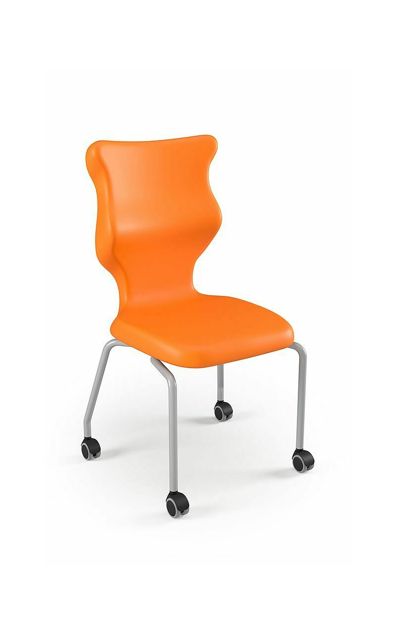 Krzesło szkolne Spider soft nr 1 Dobre krzesło Entelo Krzesła w rozmiarach od 1- 4 wymagają biurek (stolików) o odpowiedniej wysokości blatu. Krzesło szkolne profilowane przeznaczone dla dzieci i młodzieży. Oferowane przez naszą firmę krzesło ucznia jest specjalnie przygotowaną ofertą w porozumieniu z ze specjalistami w zakresie postawy dziecka, tak aby było krzesłem ergonomicznym i idealnie dopasowanym do sylwetki "młodego kręgosłupa". Dobre krzesło to produkt profilaktyczny, który poprzez wyprofilowanie lordozy lędźwiowej wymusza obciążenie guzów kulszowych. Prawidłowe ustawienie miednicy jest podstawą do prawidłowego ustawienia górnych segmentów kręgosłupa. Jest ono odpowiedzią na poszerzającą się w szybkim tempie grupę dzieci i młodzieży z wadami postawy, które wpływają na stan zdrowia i sprawność fizyczną młodego pokolenia. Kubełek Krzesło wyprodukowane w technologii rozdmuchu, umożliwiającej powstanie tzw. płaszcza termicznego. Kubełek: wykonany z tworzywa (polietylen wysokociśnieninowy). Model posiada miękkie tapicerowane siedzisko w kolorze czarnym. Z tyłu siedziska umieszczono uchwyt do szybkiego przenoszenia krzesła. Kolorystyka kubełka do wyboru w "Konfiguratorze Modelu". Dostępne kolory: Dostępne 4 nowe kolory kubełków: Stelaż Pająk. Malowany proszkowo na kolor szary. Stelaż o średnicy 22 mm. Stopki antypoślizgowe: -białe (tworzywo sztuczne). Wymiary Rozmiar nr 1: Wzrost dziecka: 93 cm - 116 cm Wysokość siedziska: 26 cm Głębokość siedziska: 26 cm Szerokość siedziska: 29 cm Wysokość oparcia: 30 cm Terminy Towar na zamówienie. Czas produkcji do 8 tygodni. Gwarancja Gwarancja 24-miesięczna. Kolekcja Spider posiada certyfikat potwierdzający zgodność z normą PN-EN 1729-1:2016-02, PN-EN 1729-2+A1:2016-02. Krzesło posiada Atest Higieniczny. 10 różnic pomiędzy Dobrym Krzesłem, a tradycyjnym produktem: 1. Wklęsło-wypukła forma krzesła – rozwiązanie wspomaga prawidłowe ułożenie kręgosłupa. 2. Optymalne krzywizny oparcia (kąt zgodny z normą PN-EN 1729 -1:2007) - mobilizują pracę mięśni przykręgosłupowych, wzmacniając kręgosłup. 3. Odpowiednio wyprofilowane siedzisko – wykonanie zgodnie z zasadami ergonomii zapewnia użytkownikowi maksimum komfortu, stymuluje tułów do prawidłowego ułożenia. 4. Struktura krzesła - zmniejsza odbicia sztucznego oświetlenia. 5. Komfort termiczny – innowacyjna technologia wytwarzania umożliwia powstanie płaszcza termicznego pomiędzy dwoma płaszczyznami krzesła, zapewniając komfort dla pleców i pośladków. 6. Elastyczność (która powoduje „dynamiczny” siad – wymóg współczesnej ergonomii) oraz brak ostrych krawędzi. 7. Łatwość utrzymania siedziska w czystości - jego powierzchnia nie elektryzuje się. 8. Duża wytrzymałość - osiągnięta dzięki unikalnej technologii wytwarzania - zapewnia wielokrotnie dłuższy czas użytkowania. 9. Wysoka stabilność – uzyskana z połączenia doświadczeń specjalistów z zakresu ergonomii i rehabilitacji ruchowej. 10. Przyjazne środowisku - w pełni nadaje się do ponownego przetworzenia – tradycyjne krzesła nie nadają się do recyklingu. Ergonomia krzesła dla ucznia: zapoznaj się klikając na poniższe zdjęcie