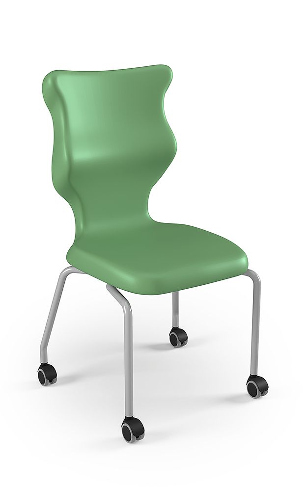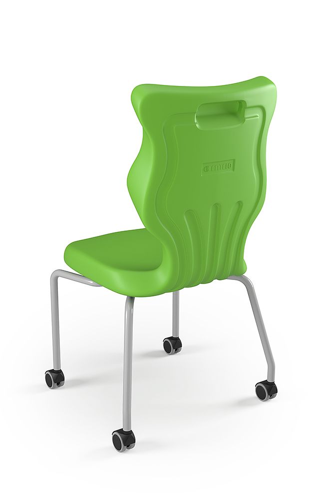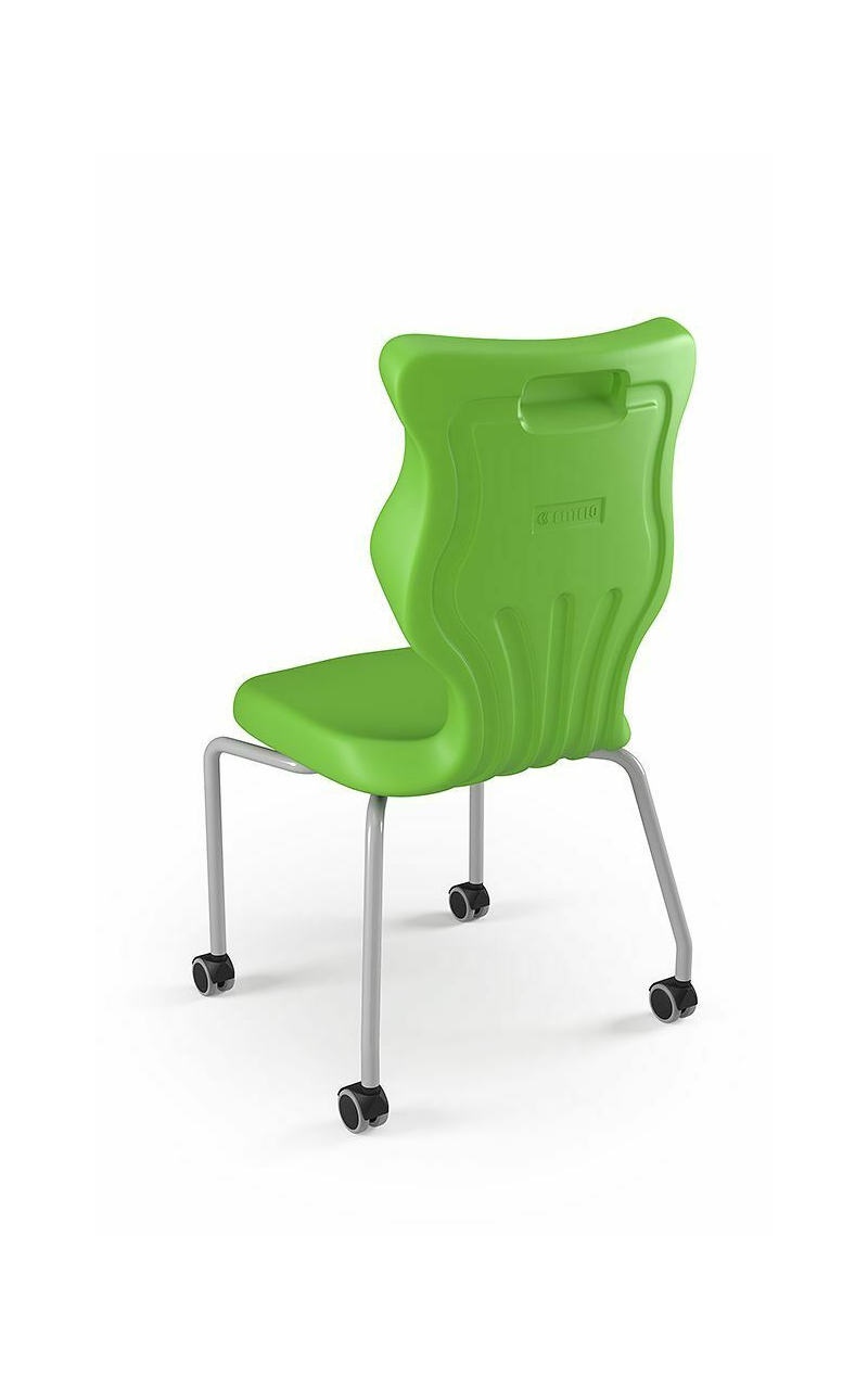 Krzesło szkolne Spider soft nr 2 Dobre krzesło Entelo Krzesła w rozmiarach od 1- 4 wymagają biurek (stolików) o odpowiedniej wysokości blatu. Krzesło szkolne profilowane przeznaczone dla dzieci i młodzieży. Oferowane przez naszą firmę krzesło ucznia jest specjalnie przygotowaną ofertą w porozumieniu z ze specjalistami w zakresie postawy dziecka, tak aby było krzesłem ergonomicznym i idealnie dopasowanym do sylwetki "młodego kręgosłupa". Dobre krzesło to produkt profilaktyczny, który poprzez wyprofilowanie lordozy lędźwiowej wymusza obciążenie guzów kulszowych. Prawidłowe ustawienie miednicy jest podstawą do prawidłowego ustawienia górnych segmentów kręgosłupa. Jest ono odpowiedzią na poszerzającą się w szybkim tempie grupę dzieci i młodzieży z wadami postawy, które wpływają na stan zdrowia i sprawność fizyczną młodego pokolenia. Kubełek Krzesło wyprodukowane w technologii rozdmuchu, umożliwiającej powstanie tzw. płaszcza termicznego. Kubełek: wykonany z tworzywa (polietylen wysokociśnieninowy). Model posiada miękkie tapicerowane siedzisko w kolorze czarnym. Z tyłu siedziska umieszczono uchwyt do szybkiego przenoszenia krzesła. Kolorystyka kubełka do wyboru w "Konfiguratorze Modelu". Dostępne kolory: Dostępne 4 nowe kolory kubełków: Stelaż Pająk. Malowany proszkowo na kolor szary. Stelaż o średnicy 22 mm. Stopki antypoślizgowe: -białe (tworzywo sztuczne). Wymiary Rozmiar nr 2: Wzrost dziecka: 108 cm - 121 cm Wysokość siedziska: 31 cm Głębokość siedziska: 26 cm Szerokość siedziska: 29 cm Wysokość oparcia: 30 cm Terminy Towar na zamówienie. Czas produkcji do 8 tygodni. Gwarancja Gwarancja 24-miesięczna. Kolekcja Spider posiada certyfikat potwierdzający zgodność z normą PN-EN 1729-1:2016-02, PN-EN 1729-2+A1:2016-02. Krzesło posiada Atest Higieniczny. 10 różnic pomiędzy Dobrym Krzesłem, a tradycyjnym produktem: 1. Wklęsło-wypukła forma krzesła – rozwiązanie wspomaga prawidłowe ułożenie kręgosłupa. 2. Optymalne krzywizny oparcia (kąt zgodny z normą PN-EN 1729 -1:2007) - mobilizują pracę mięśni przykręgosłupowych, wzmacniając kręgosłup. 3. Odpowiednio wyprofilowane siedzisko – wykonanie zgodnie z zasadami ergonomii zapewnia użytkownikowi maksimum komfortu, stymuluje tułów do prawidłowego ułożenia. 4. Struktura krzesła - zmniejsza odbicia sztucznego oświetlenia. 5. Komfort termiczny – innowacyjna technologia wytwarzania umożliwia powstanie płaszcza termicznego pomiędzy dwoma płaszczyznami krzesła, zapewniając komfort dla pleców i pośladków. 6. Elastyczność (która powoduje „dynamiczny” siad – wymóg współczesnej ergonomii) oraz brak ostrych krawędzi. 7. Łatwość utrzymania siedziska w czystości - jego powierzchnia nie elektryzuje się. 8. Duża wytrzymałość - osiągnięta dzięki unikalnej technologii wytwarzania - zapewnia wielokrotnie dłuższy czas użytkowania. 9. Wysoka stabilność – uzyskana z połączenia doświadczeń specjalistów z zakresu ergonomii i rehabilitacji ruchowej. 10. Przyjazne środowisku - w pełni nadaje się do ponownego przetworzenia – tradycyjne krzesła nie nadają się do recyklingu. Ergonomia krzesła dla dziecka: zapoznaj się klikając na poniższe zdjęcie