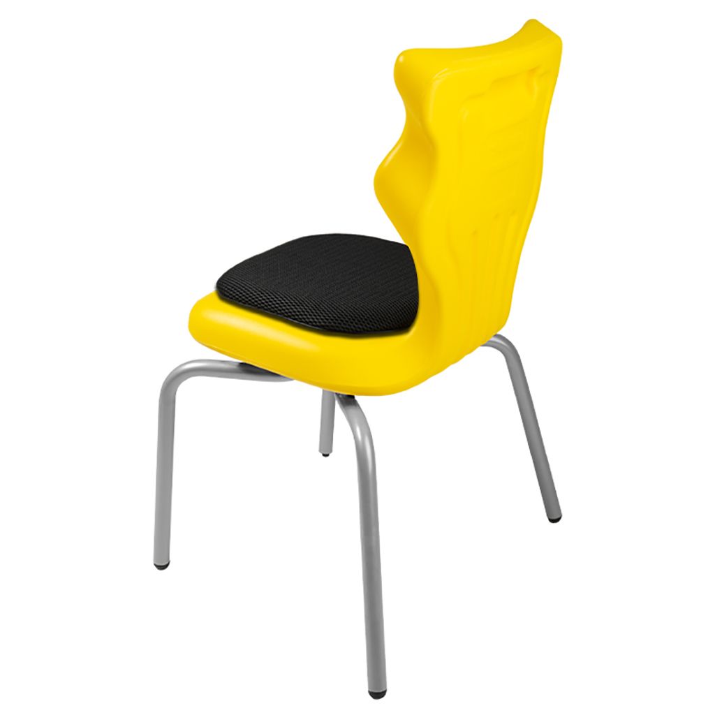 Krzesło szkolne Spider soft nr 1 Dobre krzesło Entelo Krzesła w rozmiarach od 1- 4 wymagają biurek (stolików) o odpowiedniej wysokości blatu. Krzesło szkolne profilowane przeznaczone dla dzieci i młodzieży. Oferowane przez naszą firmę krzesło ucznia jest specjalnie przygotowaną ofertą w porozumieniu z ze specjalistami w zakresie postawy dziecka, tak aby było krzesłem ergonomicznym i idealnie dopasowanym do sylwetki "młodego kręgosłupa". Dobre krzesło to produkt profilaktyczny, który poprzez wyprofilowanie lordozy lędźwiowej wymusza obciążenie guzów kulszowych. Prawidłowe ustawienie miednicy jest podstawą do prawidłowego ustawienia górnych segmentów kręgosłupa. Jest ono odpowiedzią na poszerzającą się w szybkim tempie grupę dzieci i młodzieży z wadami postawy, które wpływają na stan zdrowia i sprawność fizyczną młodego pokolenia. Kubełek Krzesło wyprodukowane w technologii rozdmuchu, umożliwiającej powstanie tzw. płaszcza termicznego. Kubełek: wykonany z tworzywa (polietylen wysokociśnieninowy). Model posiada miękkie tapicerowane siedzisko w kolorze czarnym. Z tyłu siedziska umieszczono uchwyt do szybkiego przenoszenia krzesła. Kolorystyka kubełka do wyboru w "Konfiguratorze Modelu". Dostępne kolory: Dostępne 4 nowe kolory kubełków: Stelaż Pająk. Malowany proszkowo na kolor szary. Stelaż o średnicy 22 mm. Stopki antypoślizgowe: -białe (tworzywo sztuczne). Wymiary Rozmiar nr 1: Wzrost dziecka: 93 cm - 116 cm Wysokość siedziska: 26 cm Głębokość siedziska: 26 cm Szerokość siedziska: 29 cm Wysokość oparcia: 30 cm Terminy Towar na zamówienie. Czas produkcji do 8 tygodni. Gwarancja Gwarancja 24-miesięczna. Kolekcja Spider posiada certyfikat potwierdzający zgodność z normą PN-EN 1729-1:2016-02, PN-EN 1729-2+A1:2016-02. Krzesło posiada Atest Higieniczny. 10 różnic pomiędzy Dobrym Krzesłem, a tradycyjnym produktem: 1. Wklęsło-wypukła forma krzesła – rozwiązanie wspomaga prawidłowe ułożenie kręgosłupa. 2. Optymalne krzywizny oparcia (kąt zgodny z normą PN-EN 1729 -1:2007) - mobilizują pracę mięśni przykręgosłupowych, wzmacniając kręgosłup. 3. Odpowiednio wyprofilowane siedzisko – wykonanie zgodnie z zasadami ergonomii zapewnia użytkownikowi maksimum komfortu, stymuluje tułów do prawidłowego ułożenia. 4. Struktura krzesła - zmniejsza odbicia sztucznego oświetlenia. 5. Komfort termiczny – innowacyjna technologia wytwarzania umożliwia powstanie płaszcza termicznego pomiędzy dwoma płaszczyznami krzesła, zapewniając komfort dla pleców i pośladków. 6. Elastyczność (która powoduje „dynamiczny” siad – wymóg współczesnej ergonomii) oraz brak ostrych krawędzi. 7. Łatwość utrzymania siedziska w czystości - jego powierzchnia nie elektryzuje się. 8. Duża wytrzymałość - osiągnięta dzięki unikalnej technologii wytwarzania - zapewnia wielokrotnie dłuższy czas użytkowania. 9. Wysoka stabilność – uzyskana z połączenia doświadczeń specjalistów z zakresu ergonomii i rehabilitacji ruchowej. 10. Przyjazne środowisku - w pełni nadaje się do ponownego przetworzenia – tradycyjne krzesła nie nadają się do recyklingu. Ergonomia krzesła dla ucznia: zapoznaj się klikając na poniższe zdjęcie