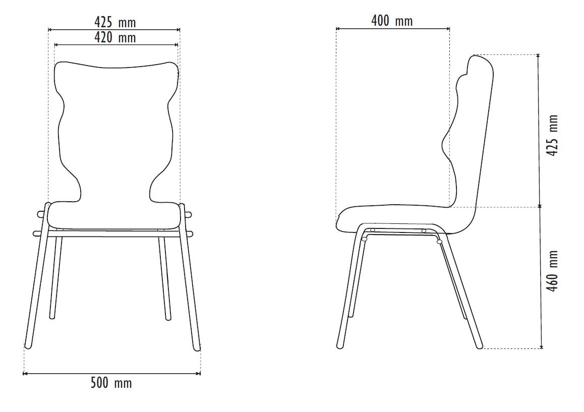 Krzesło dla dziecko z profilowanym oparciem C-LINE nr 6 Krzesło C-LINE dostępne przy zamówieniu min. 5 sztuk!!! Krzesło z profilowanym oparciem dla dziecka. Jest to krzesło specjalnie zaprojektowane z myślą o zdrowym siedzeniu przez nasze dzieci. Krzesło zostało stworzone we współpracy ze specjalistami w zakresie postaw dziecka, tak by było krzesłem idealnie dopasowanym do sylwetki młodego kręgosłupa. Kubełek Krzesło wyprodukowane w technologii rozdmuchu, umożliwiającej powstanie tzw. płaszcza termicznego. Kubełek wykonany z tworzywa (polietylen wysokociśnieninowy). Z tyłu siedziska umieszczono uchwyt do szybkiego przenoszenia krzesła. Możliwość odłożenia krzesła na ławce bez konieczności odwracania. Kolorystyka kubełka do wyboru w "Konfiguratorze Modelu". Dostępne kolory: Dostępne 4 nowe kolory kubełków: Stelaż Stelaż malowany proszkowo na kolor szary. Stelaż o średnicy 25 mm. Stopki antypoślizgowe: czarne (tworzywo sztuczne). Wymiary Rozmiar nr 6: Wzrost dziecka: 159 cm – 188 cm Głębokość siedziska: 40 cm Szerokość siedziska: 41,5 cm Wysokość oparcia: 45 cm Wysokość siedziska: 46 cm Atesty Kolekcja C-line posiada certyfikat potwierdzający zgodność z normą PN-EN 1729-1:2016-02, PN-EN 1729-2+A1:2016-02. Krzesło posiada Atest Higieniczny. Terminy Towar na zamówienie. Czas produkcji do 8 tygodni. Gwarancja Gwarancja 24-miesięczna. 10 różnic pomiędzy Dobrym Krzesłem, a tradycyjnym produktem: 1. Wklęsło-wypukła forma krzesła – rozwiązanie wspomaga prawidłowe ułożenie kręgosłupa. 2. Optymalne krzywizny oparcia (kąt zgodny z normą PN-EN 1729 -1:2007) - mobilizują pracę mięśni przykręgosłupowych, wzmacniając kręgosłup. 3. Odpowiednio wyprofilowane siedzisko – wykonanie zgodnie z zasadami ergonomii zapewnia użytkownikowi maksimum komfortu, stymuluje tułów do prawidłowego ułożenia. 4. Struktura krzesła - zmniejsza odbicia sztucznego oświetlenia. 5. Komfort termiczny – innowacyjna technologia wytwarzania umożliwia powstanie płaszcza termicznego pomiędzy dwoma płaszczyznami krzesła, zapewniając komfort dla pleców i pośladków. 6. Elastyczność (która powoduje „dynamiczny” siad – wymóg współczesnej ergonomii) oraz brak ostrych krawędzi. 7. Łatwość utrzymania siedziska w czystości - jego powierzchnia nie elektryzuje się. 8. Duża wytrzymałość - osiągnięta dzięki unikalnej technologii wytwarzania - zapewnia wielokrotnie dłuższy czas użytkowania. 9. Wysoka stabilność – uzyskana z połączenia doświadczeń specjalistów z zakresu ergonomii i rehabilitacji ruchowej. 10. Przyjazne środowisku - w pełni nadaje się do ponownego przetworzenia – tradycyjne krzesła nie nadają się do recyklingu. Ergonomia krzesła dla ucznia zapoznaj się klikając na poniższe zdjęcie