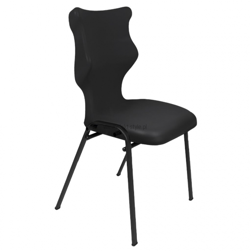 Krzesło szkolne Spider soft nr 1 Dobre krzesło Entelo Krzesła w rozmiarach od 1- 4 wymagają biurek (stolików) o odpowiedniej wysokości blatu. Krzesło szkolne profilowane przeznaczone dla dzieci i młodzieży. Oferowane przez naszą firmę krzesło ucznia jest specjalnie przygotowaną ofertą w porozumieniu z ze specjalistami w zakresie postawy dziecka, tak aby było krzesłem ergonomicznym i idealnie dopasowanym do sylwetki "młodego kręgosłupa". Dobre krzesło to produkt profilaktyczny, który poprzez wyprofilowanie lordozy lędźwiowej wymusza obciążenie guzów kulszowych. Prawidłowe ustawienie miednicy jest podstawą do prawidłowego ustawienia górnych segmentów kręgosłupa. Jest ono odpowiedzią na poszerzającą się w szybkim tempie grupę dzieci i młodzieży z wadami postawy, które wpływają na stan zdrowia i sprawność fizyczną młodego pokolenia. Kubełek Krzesło wyprodukowane w technologii rozdmuchu, umożliwiającej powstanie tzw. płaszcza termicznego. Kubełek: wykonany z tworzywa (polietylen wysokociśnieninowy). Model posiada miękkie tapicerowane siedzisko w kolorze czarnym. Z tyłu siedziska umieszczono uchwyt do szybkiego przenoszenia krzesła. Kolorystyka kubełka do wyboru w "Konfiguratorze Modelu". Dostępne kolory: Dostępne 4 nowe kolory kubełków: Stelaż Pająk. Malowany proszkowo na kolor szary. Stelaż o średnicy 22 mm. Stopki antypoślizgowe: -białe (tworzywo sztuczne). Wymiary Rozmiar nr 1: Wzrost dziecka: 93 cm - 116 cm Wysokość siedziska: 26 cm Głębokość siedziska: 26 cm Szerokość siedziska: 29 cm Wysokość oparcia: 30 cm Terminy Towar na zamówienie. Czas produkcji do 8 tygodni. Gwarancja Gwarancja 24-miesięczna. Kolekcja Spider posiada certyfikat potwierdzający zgodność z normą PN-EN 1729-1:2016-02, PN-EN 1729-2+A1:2016-02. Krzesło posiada Atest Higieniczny. 10 różnic pomiędzy Dobrym Krzesłem, a tradycyjnym produktem: 1. Wklęsło-wypukła forma krzesła – rozwiązanie wspomaga prawidłowe ułożenie kręgosłupa. 2. Optymalne krzywizny oparcia (kąt zgodny z normą PN-EN 1729 -1:2007) - mobilizują pracę mięśni przykręgosłupowych, wzmacniając kręgosłup. 3. Odpowiednio wyprofilowane siedzisko – wykonanie zgodnie z zasadami ergonomii zapewnia użytkownikowi maksimum komfortu, stymuluje tułów do prawidłowego ułożenia. 4. Struktura krzesła - zmniejsza odbicia sztucznego oświetlenia. 5. Komfort termiczny – innowacyjna technologia wytwarzania umożliwia powstanie płaszcza termicznego pomiędzy dwoma płaszczyznami krzesła, zapewniając komfort dla pleców i pośladków. 6. Elastyczność (która powoduje „dynamiczny” siad – wymóg współczesnej ergonomii) oraz brak ostrych krawędzi. 7. Łatwość utrzymania siedziska w czystości - jego powierzchnia nie elektryzuje się. 8. Duża wytrzymałość - osiągnięta dzięki unikalnej technologii wytwarzania - zapewnia wielokrotnie dłuższy czas użytkowania. 9. Wysoka stabilność – uzyskana z połączenia doświadczeń specjalistów z zakresu ergonomii i rehabilitacji ruchowej. 10. Przyjazne środowisku - w pełni nadaje się do ponownego przetworzenia – tradycyjne krzesła nie nadają się do recyklingu. Ergonomia krzesła dla ucznia: zapoznaj się klikając na poniższe zdjęcie