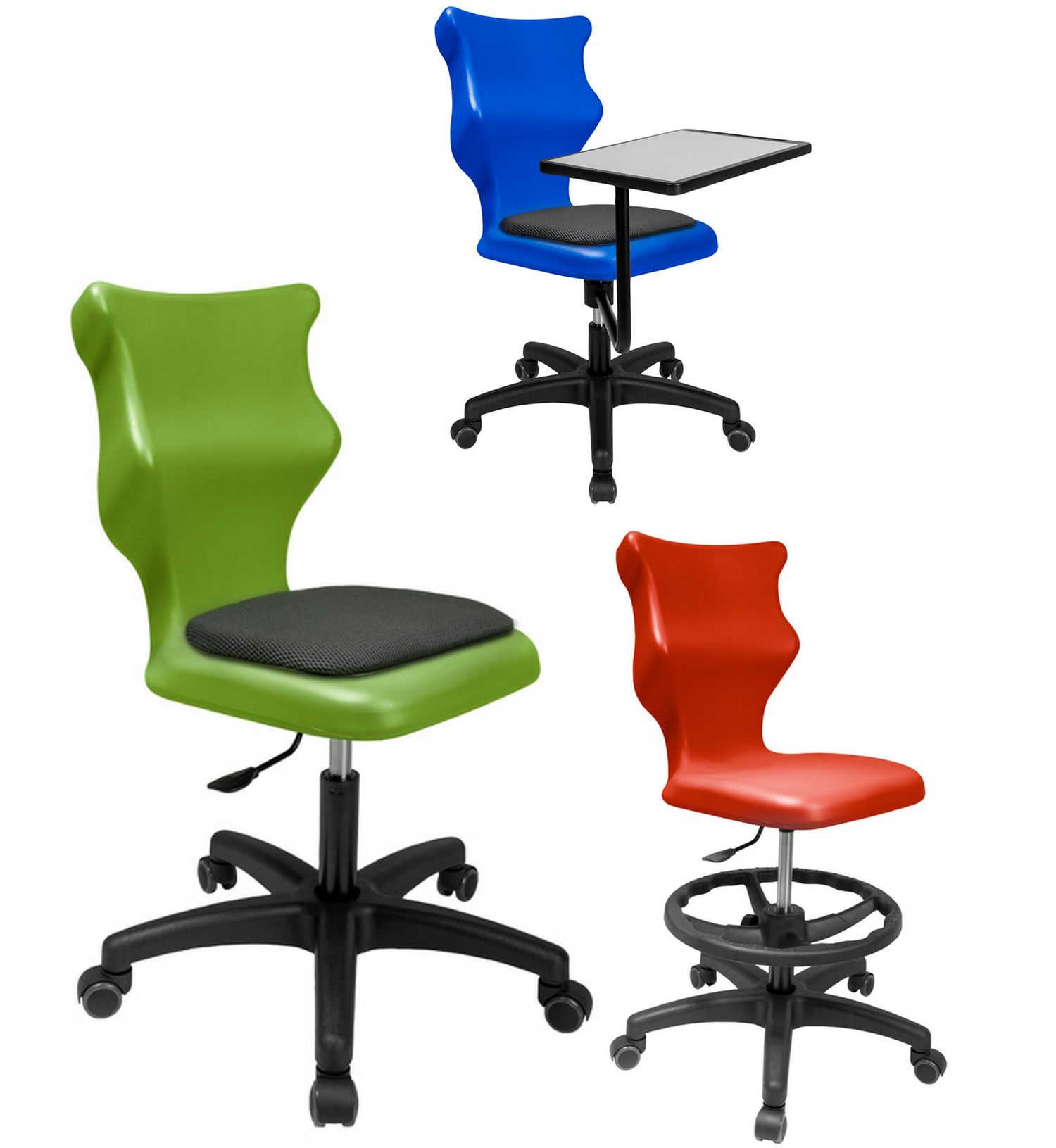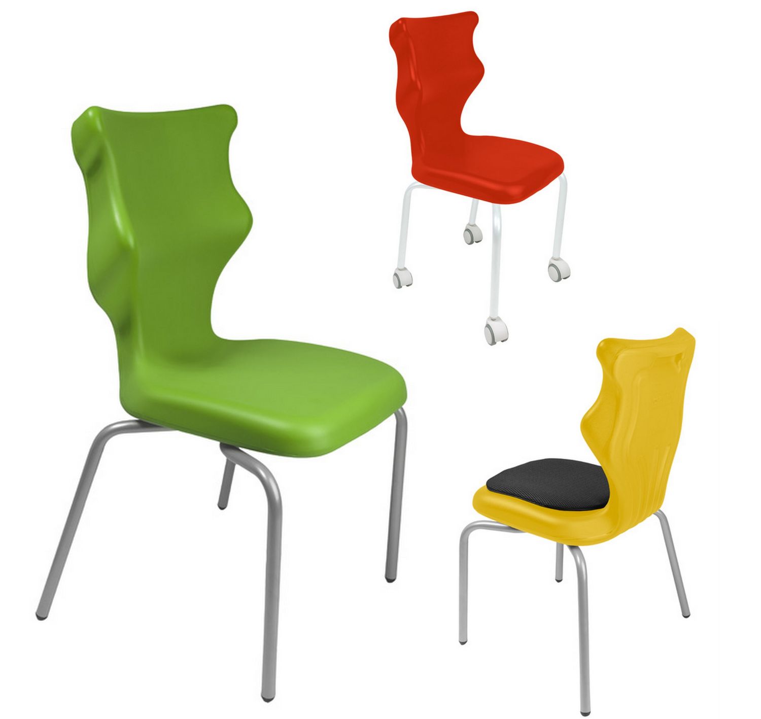 Krzesło szkolne Spider soft nr 1 Dobre krzesło Entelo Krzesła w rozmiarach od 1- 4 wymagają biurek (stolików) o odpowiedniej wysokości blatu. Krzesło szkolne profilowane przeznaczone dla dzieci i młodzieży. Oferowane przez naszą firmę krzesło ucznia jest specjalnie przygotowaną ofertą w porozumieniu z ze specjalistami w zakresie postawy dziecka, tak aby było krzesłem ergonomicznym i idealnie dopasowanym do sylwetki "młodego kręgosłupa". Dobre krzesło to produkt profilaktyczny, który poprzez wyprofilowanie lordozy lędźwiowej wymusza obciążenie guzów kulszowych. Prawidłowe ustawienie miednicy jest podstawą do prawidłowego ustawienia górnych segmentów kręgosłupa. Jest ono odpowiedzią na poszerzającą się w szybkim tempie grupę dzieci i młodzieży z wadami postawy, które wpływają na stan zdrowia i sprawność fizyczną młodego pokolenia. Kubełek Krzesło wyprodukowane w technologii rozdmuchu, umożliwiającej powstanie tzw. płaszcza termicznego. Kubełek: wykonany z tworzywa (polietylen wysokociśnieninowy). Model posiada miękkie tapicerowane siedzisko w kolorze czarnym. Z tyłu siedziska umieszczono uchwyt do szybkiego przenoszenia krzesła. Kolorystyka kubełka do wyboru w "Konfiguratorze Modelu". Dostępne kolory: Dostępne 4 nowe kolory kubełków: Stelaż Pająk. Malowany proszkowo na kolor szary. Stelaż o średnicy 22 mm. Stopki antypoślizgowe: -białe (tworzywo sztuczne). Wymiary Rozmiar nr 1: Wzrost dziecka: 93 cm - 116 cm Wysokość siedziska: 26 cm Głębokość siedziska: 26 cm Szerokość siedziska: 29 cm Wysokość oparcia: 30 cm Terminy Towar na zamówienie. Czas produkcji do 8 tygodni. Gwarancja Gwarancja 24-miesięczna. Kolekcja Spider posiada certyfikat potwierdzający zgodność z normą PN-EN 1729-1:2016-02, PN-EN 1729-2+A1:2016-02. Krzesło posiada Atest Higieniczny. 10 różnic pomiędzy Dobrym Krzesłem, a tradycyjnym produktem: 1. Wklęsło-wypukła forma krzesła – rozwiązanie wspomaga prawidłowe ułożenie kręgosłupa. 2. Optymalne krzywizny oparcia (kąt zgodny z normą PN-EN 1729 -1:2007) - mobilizują pracę mięśni przykręgosłupowych, wzmacniając kręgosłup. 3. Odpowiednio wyprofilowane siedzisko – wykonanie zgodnie z zasadami ergonomii zapewnia użytkownikowi maksimum komfortu, stymuluje tułów do prawidłowego ułożenia. 4. Struktura krzesła - zmniejsza odbicia sztucznego oświetlenia. 5. Komfort termiczny – innowacyjna technologia wytwarzania umożliwia powstanie płaszcza termicznego pomiędzy dwoma płaszczyznami krzesła, zapewniając komfort dla pleców i pośladków. 6. Elastyczność (która powoduje „dynamiczny” siad – wymóg współczesnej ergonomii) oraz brak ostrych krawędzi. 7. Łatwość utrzymania siedziska w czystości - jego powierzchnia nie elektryzuje się. 8. Duża wytrzymałość - osiągnięta dzięki unikalnej technologii wytwarzania - zapewnia wielokrotnie dłuższy czas użytkowania. 9. Wysoka stabilność – uzyskana z połączenia doświadczeń specjalistów z zakresu ergonomii i rehabilitacji ruchowej. 10. Przyjazne środowisku - w pełni nadaje się do ponownego przetworzenia – tradycyjne krzesła nie nadają się do recyklingu. Ergonomia krzesła dla ucznia: zapoznaj się klikając na poniższe zdjęcie