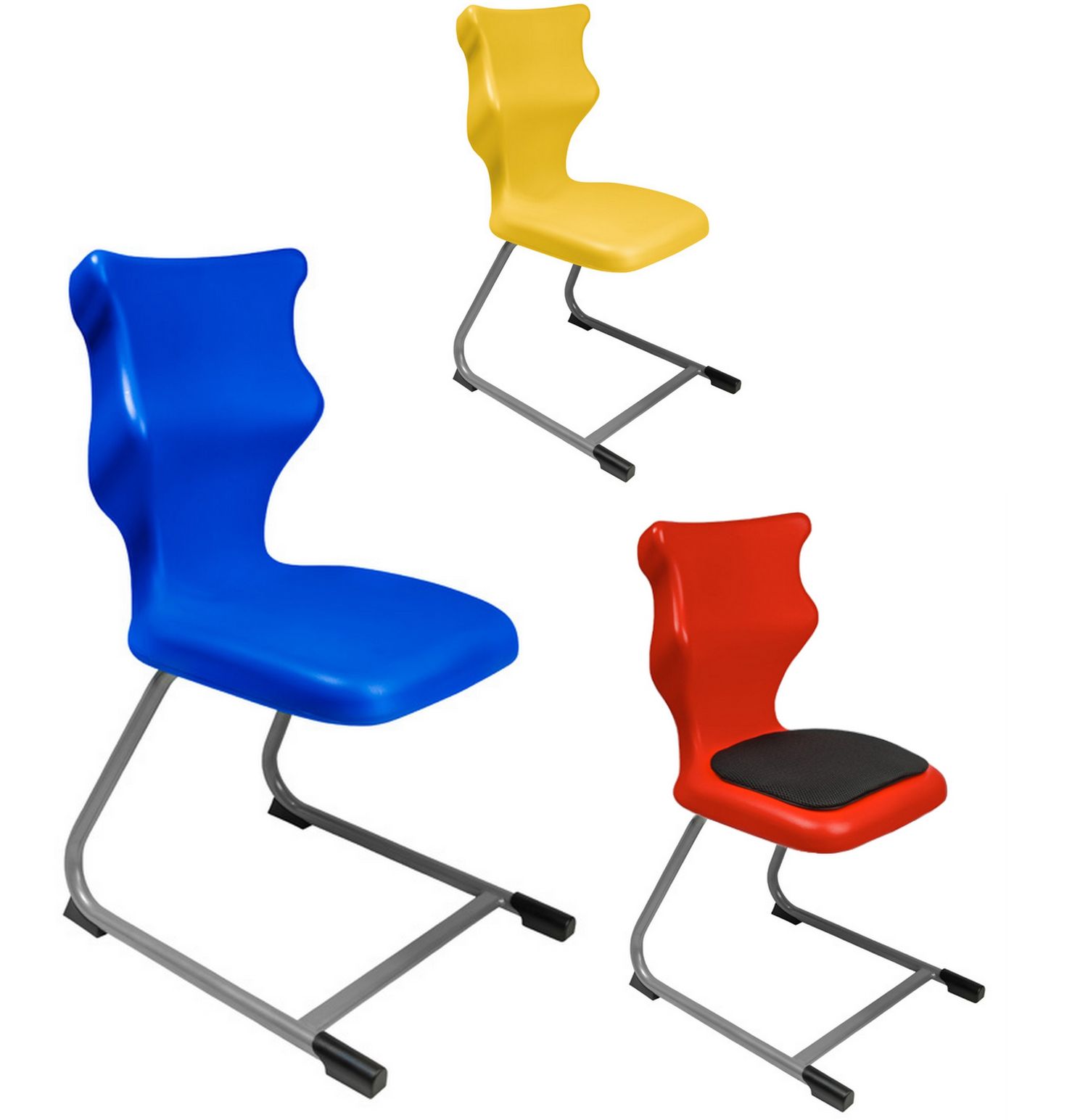 Oprócz stelaża Classic, nasza oferta obejmuje krzesła uczniowskie, na również ciekawych stelażach: typu SPIDER i typu C-LINE oraz krzesła obrotowe TWIST