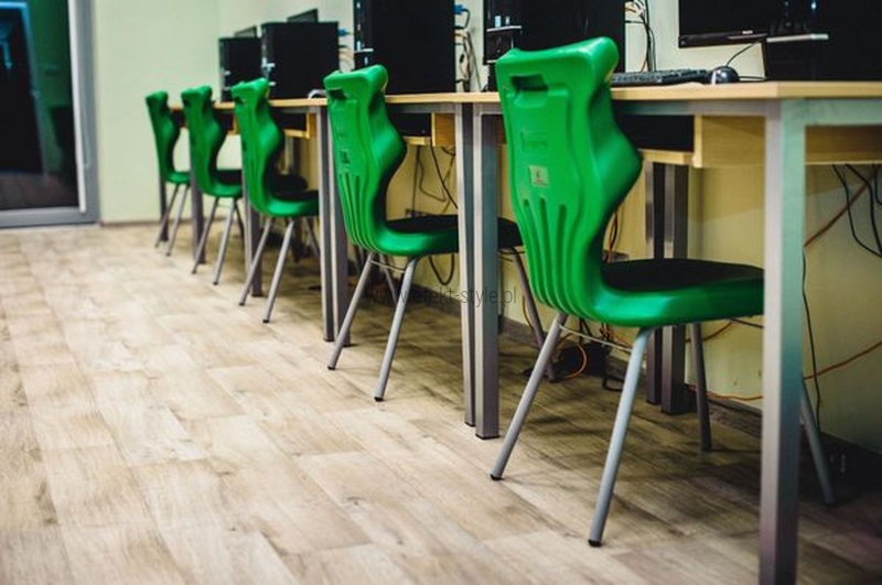Krzesło szkolne Spider soft nr 2 Dobre krzesło Entelo Krzesła w rozmiarach od 1- 4 wymagają biurek (stolików) o odpowiedniej wysokości blatu. Krzesło szkolne profilowane przeznaczone dla dzieci i młodzieży. Oferowane przez naszą firmę krzesło ucznia jest specjalnie przygotowaną ofertą w porozumieniu z ze specjalistami w zakresie postawy dziecka, tak aby było krzesłem ergonomicznym i idealnie dopasowanym do sylwetki "młodego kręgosłupa". Dobre krzesło to produkt profilaktyczny, który poprzez wyprofilowanie lordozy lędźwiowej wymusza obciążenie guzów kulszowych. Prawidłowe ustawienie miednicy jest podstawą do prawidłowego ustawienia górnych segmentów kręgosłupa. Jest ono odpowiedzią na poszerzającą się w szybkim tempie grupę dzieci i młodzieży z wadami postawy, które wpływają na stan zdrowia i sprawność fizyczną młodego pokolenia. Kubełek Krzesło wyprodukowane w technologii rozdmuchu, umożliwiającej powstanie tzw. płaszcza termicznego. Kubełek: wykonany z tworzywa (polietylen wysokociśnieninowy). Model posiada miękkie tapicerowane siedzisko w kolorze czarnym. Z tyłu siedziska umieszczono uchwyt do szybkiego przenoszenia krzesła. Kolorystyka kubełka do wyboru w "Konfiguratorze Modelu". Dostępne kolory: Dostępne 4 nowe kolory kubełków: Stelaż Pająk. Malowany proszkowo na kolor szary. Stelaż o średnicy 22 mm. Stopki antypoślizgowe: -białe (tworzywo sztuczne). Wymiary Rozmiar nr 2: Wzrost dziecka: 108 cm - 121 cm Wysokość siedziska: 31 cm Głębokość siedziska: 26 cm Szerokość siedziska: 29 cm Wysokość oparcia: 30 cm Terminy Towar na zamówienie. Czas produkcji do 8 tygodni. Gwarancja Gwarancja 24-miesięczna. Kolekcja Spider posiada certyfikat potwierdzający zgodność z normą PN-EN 1729-1:2016-02, PN-EN 1729-2+A1:2016-02. Krzesło posiada Atest Higieniczny. 10 różnic pomiędzy Dobrym Krzesłem, a tradycyjnym produktem: 1. Wklęsło-wypukła forma krzesła – rozwiązanie wspomaga prawidłowe ułożenie kręgosłupa. 2. Optymalne krzywizny oparcia (kąt zgodny z normą PN-EN 1729 -1:2007) - mobilizują pracę mięśni przykręgosłupowych, wzmacniając kręgosłup. 3. Odpowiednio wyprofilowane siedzisko – wykonanie zgodnie z zasadami ergonomii zapewnia użytkownikowi maksimum komfortu, stymuluje tułów do prawidłowego ułożenia. 4. Struktura krzesła - zmniejsza odbicia sztucznego oświetlenia. 5. Komfort termiczny – innowacyjna technologia wytwarzania umożliwia powstanie płaszcza termicznego pomiędzy dwoma płaszczyznami krzesła, zapewniając komfort dla pleców i pośladków. 6. Elastyczność (która powoduje „dynamiczny” siad – wymóg współczesnej ergonomii) oraz brak ostrych krawędzi. 7. Łatwość utrzymania siedziska w czystości - jego powierzchnia nie elektryzuje się. 8. Duża wytrzymałość - osiągnięta dzięki unikalnej technologii wytwarzania - zapewnia wielokrotnie dłuższy czas użytkowania. 9. Wysoka stabilność – uzyskana z połączenia doświadczeń specjalistów z zakresu ergonomii i rehabilitacji ruchowej. 10. Przyjazne środowisku - w pełni nadaje się do ponownego przetworzenia – tradycyjne krzesła nie nadają się do recyklingu. Ergonomia krzesła dla dziecka: zapoznaj się klikając na poniższe zdjęcie