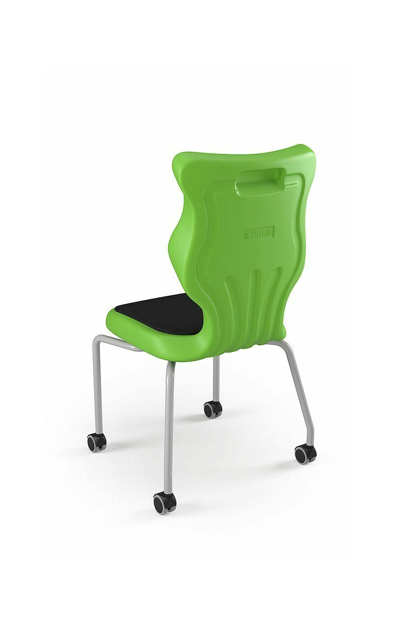 Krzesło szkolne Spider soft nr 2 Dobre krzesło Entelo Krzesła w rozmiarach od 1- 4 wymagają biurek (stolików) o odpowiedniej wysokości blatu. Krzesło szkolne profilowane przeznaczone dla dzieci i młodzieży. Oferowane przez naszą firmę krzesło ucznia jest specjalnie przygotowaną ofertą w porozumieniu z ze specjalistami w zakresie postawy dziecka, tak aby było krzesłem ergonomicznym i idealnie dopasowanym do sylwetki "młodego kręgosłupa". Dobre krzesło to produkt profilaktyczny, który poprzez wyprofilowanie lordozy lędźwiowej wymusza obciążenie guzów kulszowych. Prawidłowe ustawienie miednicy jest podstawą do prawidłowego ustawienia górnych segmentów kręgosłupa. Jest ono odpowiedzią na poszerzającą się w szybkim tempie grupę dzieci i młodzieży z wadami postawy, które wpływają na stan zdrowia i sprawność fizyczną młodego pokolenia. Kubełek Krzesło wyprodukowane w technologii rozdmuchu, umożliwiającej powstanie tzw. płaszcza termicznego. Kubełek: wykonany z tworzywa (polietylen wysokociśnieninowy). Model posiada miękkie tapicerowane siedzisko w kolorze czarnym. Z tyłu siedziska umieszczono uchwyt do szybkiego przenoszenia krzesła. Kolorystyka kubełka do wyboru w "Konfiguratorze Modelu". Dostępne kolory: Dostępne 4 nowe kolory kubełków: Stelaż Pająk. Malowany proszkowo na kolor szary. Stelaż o średnicy 22 mm. Stopki antypoślizgowe: -białe (tworzywo sztuczne). Wymiary Rozmiar nr 2: Wzrost dziecka: 108 cm - 121 cm Wysokość siedziska: 31 cm Głębokość siedziska: 26 cm Szerokość siedziska: 29 cm Wysokość oparcia: 30 cm Terminy Towar na zamówienie. Czas produkcji do 8 tygodni. Gwarancja Gwarancja 24-miesięczna. Kolekcja Spider posiada certyfikat potwierdzający zgodność z normą PN-EN 1729-1:2016-02, PN-EN 1729-2+A1:2016-02. Krzesło posiada Atest Higieniczny. 10 różnic pomiędzy Dobrym Krzesłem, a tradycyjnym produktem: 1. Wklęsło-wypukła forma krzesła – rozwiązanie wspomaga prawidłowe ułożenie kręgosłupa. 2. Optymalne krzywizny oparcia (kąt zgodny z normą PN-EN 1729 -1:2007) - mobilizują pracę mięśni przykręgosłupowych, wzmacniając kręgosłup. 3. Odpowiednio wyprofilowane siedzisko – wykonanie zgodnie z zasadami ergonomii zapewnia użytkownikowi maksimum komfortu, stymuluje tułów do prawidłowego ułożenia. 4. Struktura krzesła - zmniejsza odbicia sztucznego oświetlenia. 5. Komfort termiczny – innowacyjna technologia wytwarzania umożliwia powstanie płaszcza termicznego pomiędzy dwoma płaszczyznami krzesła, zapewniając komfort dla pleców i pośladków. 6. Elastyczność (która powoduje „dynamiczny” siad – wymóg współczesnej ergonomii) oraz brak ostrych krawędzi. 7. Łatwość utrzymania siedziska w czystości - jego powierzchnia nie elektryzuje się. 8. Duża wytrzymałość - osiągnięta dzięki unikalnej technologii wytwarzania - zapewnia wielokrotnie dłuższy czas użytkowania. 9. Wysoka stabilność – uzyskana z połączenia doświadczeń specjalistów z zakresu ergonomii i rehabilitacji ruchowej. 10. Przyjazne środowisku - w pełni nadaje się do ponownego przetworzenia – tradycyjne krzesła nie nadają się do recyklingu. Ergonomia krzesła dla dziecka: zapoznaj się klikając na poniższe zdjęcie