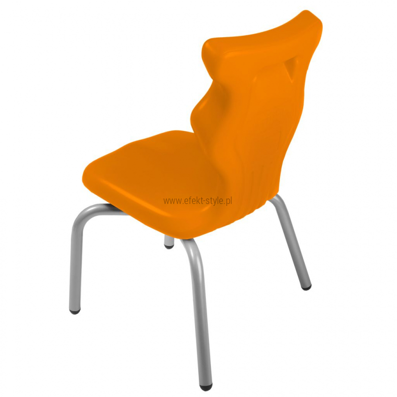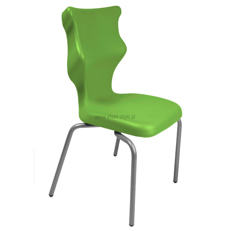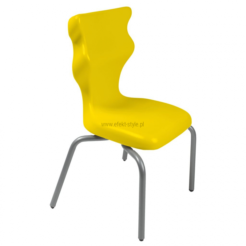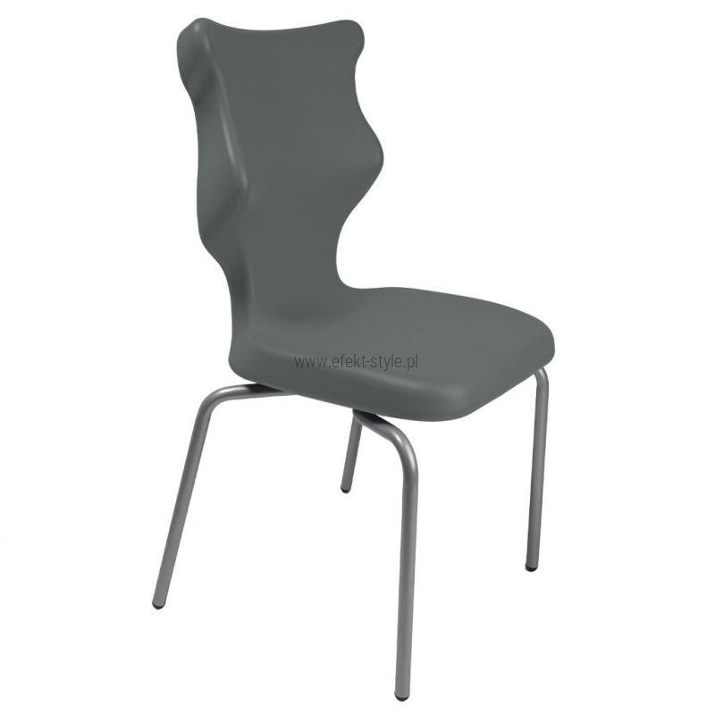 Krzesło szkolne Spider soft nr 1 Dobre krzesło Entelo Krzesła w rozmiarach od 1- 4 wymagają biurek (stolików) o odpowiedniej wysokości blatu. Krzesło szkolne profilowane przeznaczone dla dzieci i młodzieży. Oferowane przez naszą firmę krzesło ucznia jest specjalnie przygotowaną ofertą w porozumieniu z ze specjalistami w zakresie postawy dziecka, tak aby było krzesłem ergonomicznym i idealnie dopasowanym do sylwetki "młodego kręgosłupa". Dobre krzesło to produkt profilaktyczny, który poprzez wyprofilowanie lordozy lędźwiowej wymusza obciążenie guzów kulszowych. Prawidłowe ustawienie miednicy jest podstawą do prawidłowego ustawienia górnych segmentów kręgosłupa. Jest ono odpowiedzią na poszerzającą się w szybkim tempie grupę dzieci i młodzieży z wadami postawy, które wpływają na stan zdrowia i sprawność fizyczną młodego pokolenia. Kubełek Krzesło wyprodukowane w technologii rozdmuchu, umożliwiającej powstanie tzw. płaszcza termicznego. Kubełek: wykonany z tworzywa (polietylen wysokociśnieninowy). Model posiada miękkie tapicerowane siedzisko w kolorze czarnym. Z tyłu siedziska umieszczono uchwyt do szybkiego przenoszenia krzesła. Kolorystyka kubełka do wyboru w "Konfiguratorze Modelu". Dostępne kolory: Dostępne 4 nowe kolory kubełków: Stelaż Pająk. Malowany proszkowo na kolor szary. Stelaż o średnicy 22 mm. Stopki antypoślizgowe: -białe (tworzywo sztuczne). Wymiary Rozmiar nr 1: Wzrost dziecka: 93 cm - 116 cm Wysokość siedziska: 26 cm Głębokość siedziska: 26 cm Szerokość siedziska: 29 cm Wysokość oparcia: 30 cm Terminy Towar na zamówienie. Czas produkcji do 8 tygodni. Gwarancja Gwarancja 24-miesięczna. Kolekcja Spider posiada certyfikat potwierdzający zgodność z normą PN-EN 1729-1:2016-02, PN-EN 1729-2+A1:2016-02. Krzesło posiada Atest Higieniczny. 10 różnic pomiędzy Dobrym Krzesłem, a tradycyjnym produktem: 1. Wklęsło-wypukła forma krzesła – rozwiązanie wspomaga prawidłowe ułożenie kręgosłupa. 2. Optymalne krzywizny oparcia (kąt zgodny z normą PN-EN 1729 -1:2007) - mobilizują pracę mięśni przykręgosłupowych, wzmacniając kręgosłup. 3. Odpowiednio wyprofilowane siedzisko – wykonanie zgodnie z zasadami ergonomii zapewnia użytkownikowi maksimum komfortu, stymuluje tułów do prawidłowego ułożenia. 4. Struktura krzesła - zmniejsza odbicia sztucznego oświetlenia. 5. Komfort termiczny – innowacyjna technologia wytwarzania umożliwia powstanie płaszcza termicznego pomiędzy dwoma płaszczyznami krzesła, zapewniając komfort dla pleców i pośladków. 6. Elastyczność (która powoduje „dynamiczny” siad – wymóg współczesnej ergonomii) oraz brak ostrych krawędzi. 7. Łatwość utrzymania siedziska w czystości - jego powierzchnia nie elektryzuje się. 8. Duża wytrzymałość - osiągnięta dzięki unikalnej technologii wytwarzania - zapewnia wielokrotnie dłuższy czas użytkowania. 9. Wysoka stabilność – uzyskana z połączenia doświadczeń specjalistów z zakresu ergonomii i rehabilitacji ruchowej. 10. Przyjazne środowisku - w pełni nadaje się do ponownego przetworzenia – tradycyjne krzesła nie nadają się do recyklingu. Ergonomia krzesła dla ucznia: zapoznaj się klikając na poniższe zdjęcie