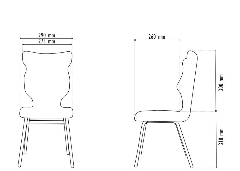 Krzesło dla dziecko z profilowanym oparciem C-LINE nr 6 Krzesło C-LINE dostępne przy zamówieniu min. 5 sztuk!!! Krzesło z profilowanym oparciem dla dziecka. Jest to krzesło specjalnie zaprojektowane z myślą o zdrowym siedzeniu przez nasze dzieci. Krzesło zostało stworzone we współpracy ze specjalistami w zakresie postaw dziecka, tak by było krzesłem idealnie dopasowanym do sylwetki młodego kręgosłupa. Kubełek Krzesło wyprodukowane w technologii rozdmuchu, umożliwiającej powstanie tzw. płaszcza termicznego. Kubełek wykonany z tworzywa (polietylen wysokociśnieninowy). Z tyłu siedziska umieszczono uchwyt do szybkiego przenoszenia krzesła. Możliwość odłożenia krzesła na ławce bez konieczności odwracania. Kolorystyka kubełka do wyboru w "Konfiguratorze Modelu". Dostępne kolory: Dostępne 4 nowe kolory kubełków: Stelaż Stelaż malowany proszkowo na kolor szary. Stelaż o średnicy 25 mm. Stopki antypoślizgowe: czarne (tworzywo sztuczne). Wymiary Rozmiar nr 6: Wzrost dziecka: 159 cm – 188 cm Głębokość siedziska: 40 cm Szerokość siedziska: 41,5 cm Wysokość oparcia: 45 cm Wysokość siedziska: 46 cm Atesty Kolekcja C-line posiada certyfikat potwierdzający zgodność z normą PN-EN 1729-1:2016-02, PN-EN 1729-2+A1:2016-02. Krzesło posiada Atest Higieniczny. Terminy Towar na zamówienie. Czas produkcji do 8 tygodni. Gwarancja Gwarancja 24-miesięczna. 10 różnic pomiędzy Dobrym Krzesłem, a tradycyjnym produktem: 1. Wklęsło-wypukła forma krzesła – rozwiązanie wspomaga prawidłowe ułożenie kręgosłupa. 2. Optymalne krzywizny oparcia (kąt zgodny z normą PN-EN 1729 -1:2007) - mobilizują pracę mięśni przykręgosłupowych, wzmacniając kręgosłup. 3. Odpowiednio wyprofilowane siedzisko – wykonanie zgodnie z zasadami ergonomii zapewnia użytkownikowi maksimum komfortu, stymuluje tułów do prawidłowego ułożenia. 4. Struktura krzesła - zmniejsza odbicia sztucznego oświetlenia. 5. Komfort termiczny – innowacyjna technologia wytwarzania umożliwia powstanie płaszcza termicznego pomiędzy dwoma płaszczyznami krzesła, zapewniając komfort dla pleców i pośladków. 6. Elastyczność (która powoduje „dynamiczny” siad – wymóg współczesnej ergonomii) oraz brak ostrych krawędzi. 7. Łatwość utrzymania siedziska w czystości - jego powierzchnia nie elektryzuje się. 8. Duża wytrzymałość - osiągnięta dzięki unikalnej technologii wytwarzania - zapewnia wielokrotnie dłuższy czas użytkowania. 9. Wysoka stabilność – uzyskana z połączenia doświadczeń specjalistów z zakresu ergonomii i rehabilitacji ruchowej. 10. Przyjazne środowisku - w pełni nadaje się do ponownego przetworzenia – tradycyjne krzesła nie nadają się do recyklingu. Ergonomia krzesła dla ucznia zapoznaj się klikając na poniższe zdjęcie