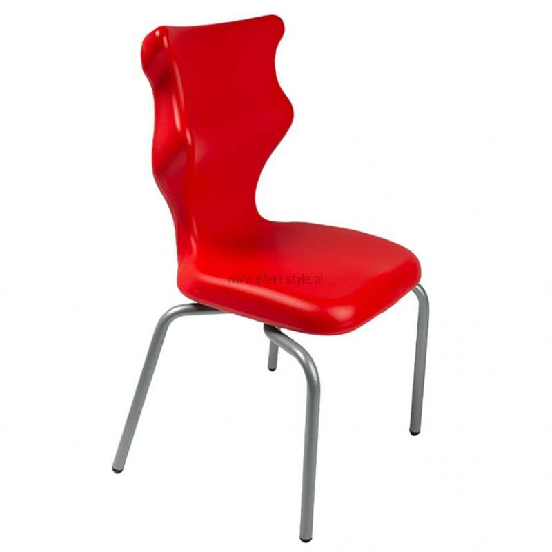 Krzesło szkolne Spider soft nr 1 Dobre krzesło Entelo Krzesła w rozmiarach od 1- 4 wymagają biurek (stolików) o odpowiedniej wysokości blatu. Krzesło szkolne profilowane przeznaczone dla dzieci i młodzieży. Oferowane przez naszą firmę krzesło ucznia jest specjalnie przygotowaną ofertą w porozumieniu z ze specjalistami w zakresie postawy dziecka, tak aby było krzesłem ergonomicznym i idealnie dopasowanym do sylwetki "młodego kręgosłupa". Dobre krzesło to produkt profilaktyczny, który poprzez wyprofilowanie lordozy lędźwiowej wymusza obciążenie guzów kulszowych. Prawidłowe ustawienie miednicy jest podstawą do prawidłowego ustawienia górnych segmentów kręgosłupa. Jest ono odpowiedzią na poszerzającą się w szybkim tempie grupę dzieci i młodzieży z wadami postawy, które wpływają na stan zdrowia i sprawność fizyczną młodego pokolenia. Kubełek Krzesło wyprodukowane w technologii rozdmuchu, umożliwiającej powstanie tzw. płaszcza termicznego. Kubełek: wykonany z tworzywa (polietylen wysokociśnieninowy). Model posiada miękkie tapicerowane siedzisko w kolorze czarnym. Z tyłu siedziska umieszczono uchwyt do szybkiego przenoszenia krzesła. Kolorystyka kubełka do wyboru w "Konfiguratorze Modelu". Dostępne kolory: Dostępne 4 nowe kolory kubełków: Stelaż Pająk. Malowany proszkowo na kolor szary. Stelaż o średnicy 22 mm. Stopki antypoślizgowe: -białe (tworzywo sztuczne). Wymiary Rozmiar nr 1: Wzrost dziecka: 93 cm - 116 cm Wysokość siedziska: 26 cm Głębokość siedziska: 26 cm Szerokość siedziska: 29 cm Wysokość oparcia: 30 cm Terminy Towar na zamówienie. Czas produkcji do 8 tygodni. Gwarancja Gwarancja 24-miesięczna. Kolekcja Spider posiada certyfikat potwierdzający zgodność z normą PN-EN 1729-1:2016-02, PN-EN 1729-2+A1:2016-02. Krzesło posiada Atest Higieniczny. 10 różnic pomiędzy Dobrym Krzesłem, a tradycyjnym produktem: 1. Wklęsło-wypukła forma krzesła – rozwiązanie wspomaga prawidłowe ułożenie kręgosłupa. 2. Optymalne krzywizny oparcia (kąt zgodny z normą PN-EN 1729 -1:2007) - mobilizują pracę mięśni przykręgosłupowych, wzmacniając kręgosłup. 3. Odpowiednio wyprofilowane siedzisko – wykonanie zgodnie z zasadami ergonomii zapewnia użytkownikowi maksimum komfortu, stymuluje tułów do prawidłowego ułożenia. 4. Struktura krzesła - zmniejsza odbicia sztucznego oświetlenia. 5. Komfort termiczny – innowacyjna technologia wytwarzania umożliwia powstanie płaszcza termicznego pomiędzy dwoma płaszczyznami krzesła, zapewniając komfort dla pleców i pośladków. 6. Elastyczność (która powoduje „dynamiczny” siad – wymóg współczesnej ergonomii) oraz brak ostrych krawędzi. 7. Łatwość utrzymania siedziska w czystości - jego powierzchnia nie elektryzuje się. 8. Duża wytrzymałość - osiągnięta dzięki unikalnej technologii wytwarzania - zapewnia wielokrotnie dłuższy czas użytkowania. 9. Wysoka stabilność – uzyskana z połączenia doświadczeń specjalistów z zakresu ergonomii i rehabilitacji ruchowej. 10. Przyjazne środowisku - w pełni nadaje się do ponownego przetworzenia – tradycyjne krzesła nie nadają się do recyklingu. Ergonomia krzesła dla ucznia: zapoznaj się klikając na poniższe zdjęcie