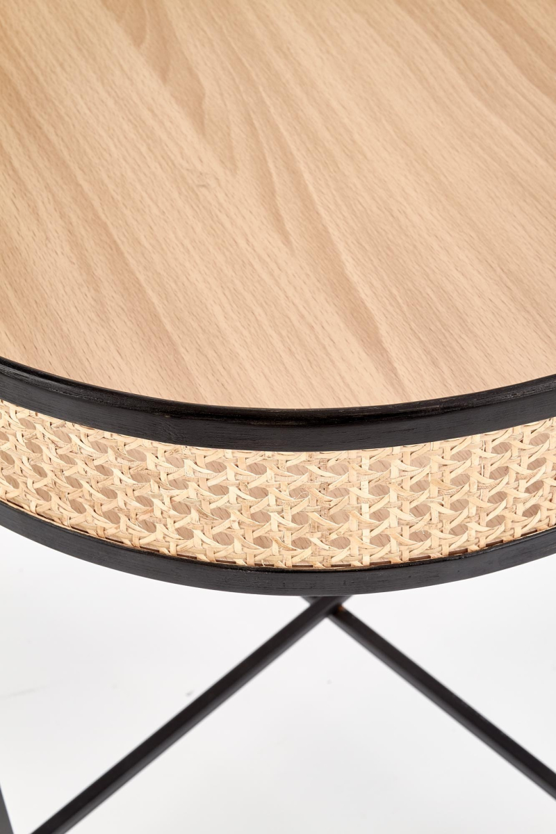 KAMALA S ława, naturalny / czarny Oferujemy ławę KAMALA w eleganckim połączeniu naturalnego drewna oraz czarnego metalu. Ten stylowy element wyposażenia wnętrza doskonale wpasuje się w nowoczesne oraz minimalistyczne aranżacje. Efektowna ława, o wymiarach fi53/55 cm, będzie idealnym miejscem na kubki, książki czy dekoracje, dodając jednocześnie szyku każdemu pomieszczeniu. Nasza ława KAMALA wyróżnia się wyjątkową funkcjonalnością oraz jakością wykonania, z zastosowaniem szkła - eleganckiego i łatwego w utrzymaniu czystości, MDF okleinowanego - odpornego na uszkodzenia, stali malowanej proszkowo - zapewniającej stabilność oraz trwałość. W zakresie kolorystyki, produkt prezentuje się w pięknym naturalnym odcieniu drewna w zestawieniu z czarnym metalem, co dodaje mu nowoczesnego charakteru. Dodatkowa, dolna półka stwarza praktyczną przestrzeń do przechowywania, umożliwiając swobodne utrzymanie porządku. Ława KAMALA to nie tylko funkcjonalny mebel, ale także modny akcent w Twoim domu. Gwarancja producenta obejmuje 24 miesiące, co potwierdza wysoką jakość produktu. Mebel dostarczany jest w formie do samodzielnego montażu, a w przesyłce znajduje się szczegółowa instrukcja, co ułatwi całą procedurę. wymiary: fi53/55 cm, materiał: szkło / MDF okleinowany / stal malowana proszkowo, kolor: naturalny - czarny