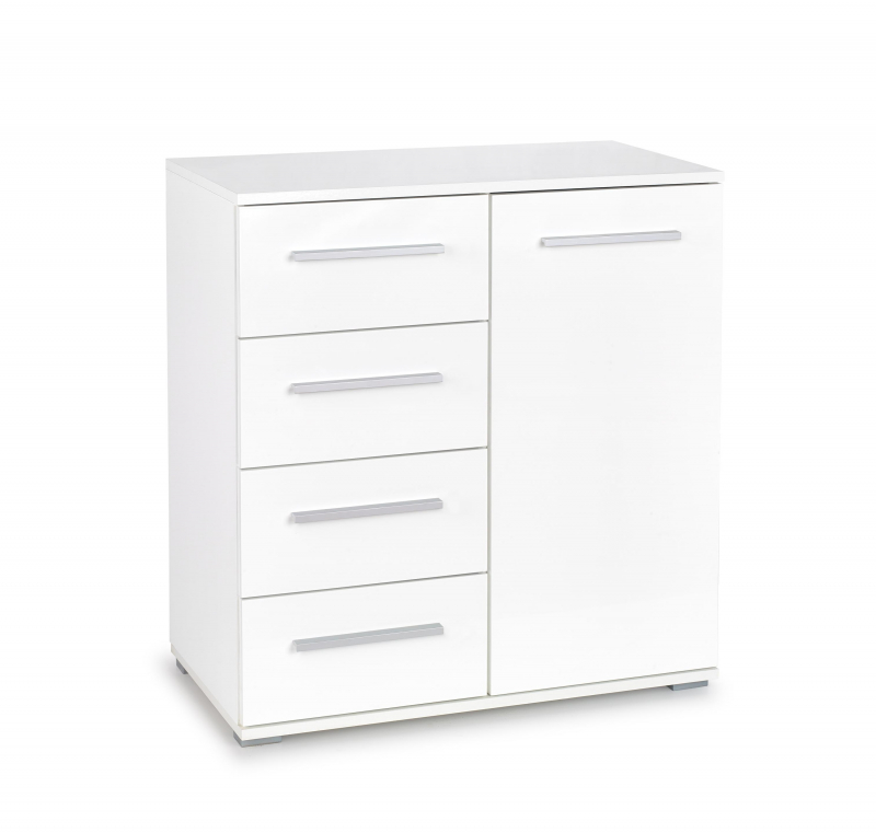 Komoda LIMA KM-2 to doskonały wybór dla osób szukających eleganckiego i funkcjonalnego mebla do każdego wnętrza. Jej nowoczesny design połączony z białym wykończeniem w stylu wysoki połysk sprawia, że stanie się ona prawdziwą ozdobą Twojego salonu, sypialni czy biura. Z wymiarami 77 x 40 x 82 cm, komoda idealnie wpisuje się w różnorodne aranżacje, oferując jednocześnie wystarczającą przestrzeń do przechowywania. Wykonana z płyty meblowej laminowanej, komoda LIMA KM-2 charakteryzuje się niezwykłą trwałością oraz łatwością w utrzymaniu czystości. Obrzeża wykończone ABS dodatkowo wzmacniają konstrukcję, co czyni ten mebel odpornym na uszkodzenia. Dzięki minimalistycznym uchwytom, dostęp do wnętrza jest nie tylko wygodny, ale i stylowy. Komoda wyposażona jest w cztery praktyczne szuflady oraz jedną przestronną szafkę, co pozwala na uporządkowanie drobiazgów oraz większych przedmiotów. Jej prosta forma oraz neutralna kolorystyka ułatwiają dopasowanie do różnych stylów wnętrz, w tym nowoczesnych, skandynawskich czy klasycznych. Komoda LIMA KM-2 to synonim funkcjonalności, która nie traci na estetyce.