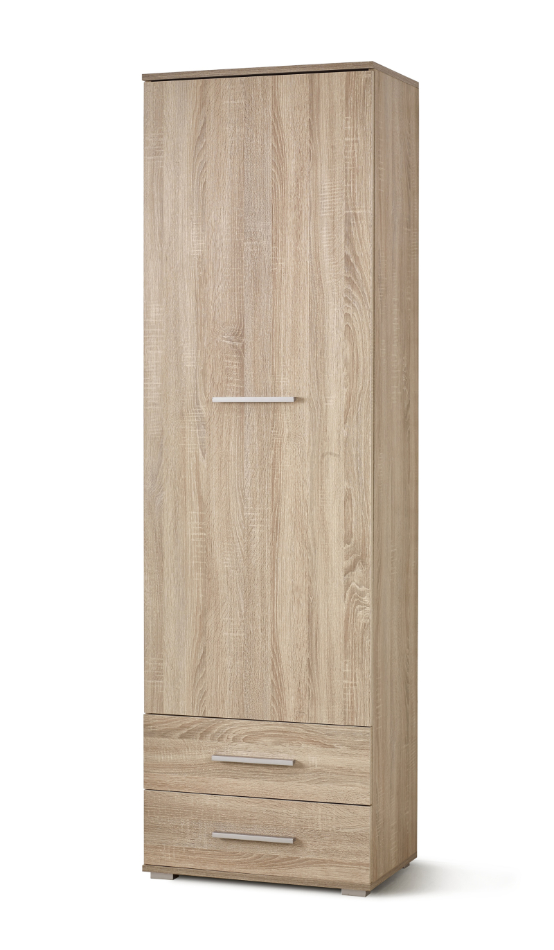 LIMA S-2 szafa dąb sonoma / biały Przedstawiamy szafę LIMA S-2, idealne połączenie nowoczesnej estetyki i funkcjonalności. Dzięki wymiarom 80/52/205 cm, ta elegancka szafa doskonale wpasuje się zarówno w niewielkie, jak i przestronne wnętrza. Wykonana z płyty meblowej laminowanej, jest nie tylko stylowa, ale i niezwykle łatwa w utrzymaniu czystości. Oferująca praktyczne rozwiązania, szafa LIMA S-2 wyróżnia się dwiema pojemnymi sekcjami oraz dwoma funkcjonalnymi szufladami. Dzięki unikalnej kolorystyce dąb sonoma / biały, szafa dodaje lekkości i świeżości każdemu pomieszczeniu. Zastosowanie obrzeży ABS zapewnia dodatkową trwałość oraz odporność na uszkodzenia mechaniczne, co sprawia, że produkt posłuży przez długie lata. Uniwersalny styl, utrzymany w modnej współczesnej estetyce, sprawia, że szafa LIMA S-2 świetnie komponuje się z innymi elementami wyposażenia w każdym stylu. Dzięki swojej prostocie i elegencji, stanie się ozdobą zarówno sypialni, jak i przedpokoju, oferując jednocześnie pełną funkcjonalność. Wymiary: 80/52/205 cm Materiał: płyta meblowa laminowana, wysoki połysk Wykończenie: obrzeża ABS Kolory: front biały / korpus dąb sonoma Funkcjonalne szuflady na drobiazgi i akcesoria Gwarancja producenta wynosi 24 miesiące, a szafa dostarczana jest z instrukcją montażu, co pozwala na samodzielne złożenie mebla w wygodny sposób. Dostawa: Oferujemy płatną usługę dostawy z wniesieniem. Prosimy o zaznaczenie tej opcji podczas składania zamówienia, aby cieszyć się komfortem bez dodatkowego wysiłku. Koszt usługi zostanie doliczony do zamówienia. wymiary: 80/52/205 cm, materiał: płyta meblowa laminowana / wysoki połysk, obrzeża ABS, kolory: biały / dąb sonoma