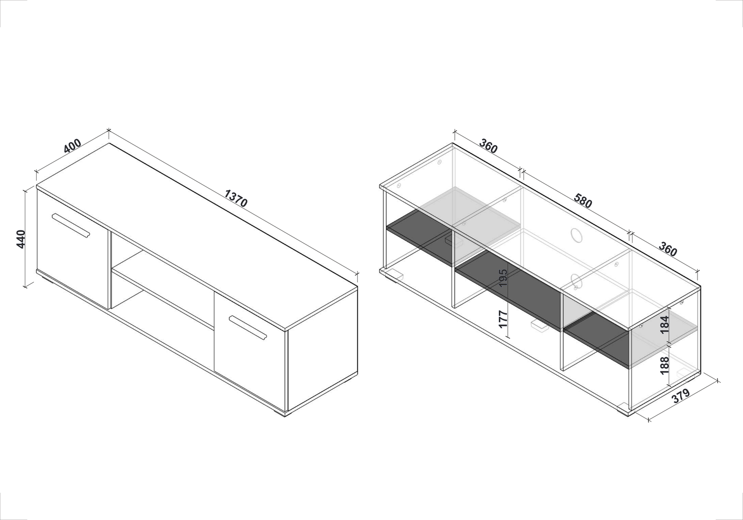 wymiary: 137/40/44 cm, materiał: płyta meblowa laminowana / wysoki połysk, obrzeża ABS, kolor: biały