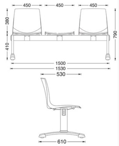 Kubełki siedziska wykonane z trwałego i odpornego na promieniowanie UV polipropylenu. Trwały plastik pokryty strukturą antypoślizgową, jest łatwy w pielęgnacji i utrzymaniu w czystości. Polecany również do użytku w przestrzeniach publicznych. Niewielki otwór, umożliwia odprowadzanie wody podczas mycia lub gdy ławka znajduje się na zewnątrz.