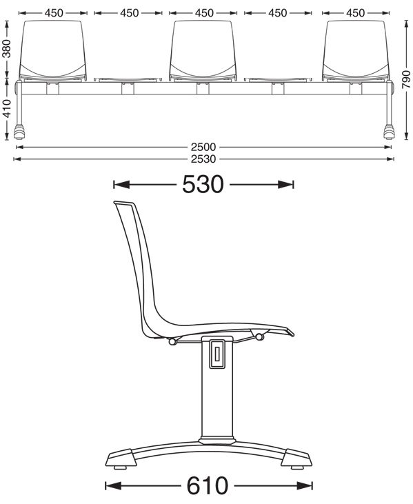 Kubełki siedziska wykonane z trwałego i odpornego na promieniowanie UV polipropylenu. Trwały plastik pokryty strukturą antypoślizgową, jest łatwy w pielęgnacji i utrzymaniu w czystości. Polecany również do użytku w przestrzeniach publicznych. Niewielki otwór, umożliwia odprowadzanie wody podczas mycia lub gdy ławka znajduje się na zewnątrz.