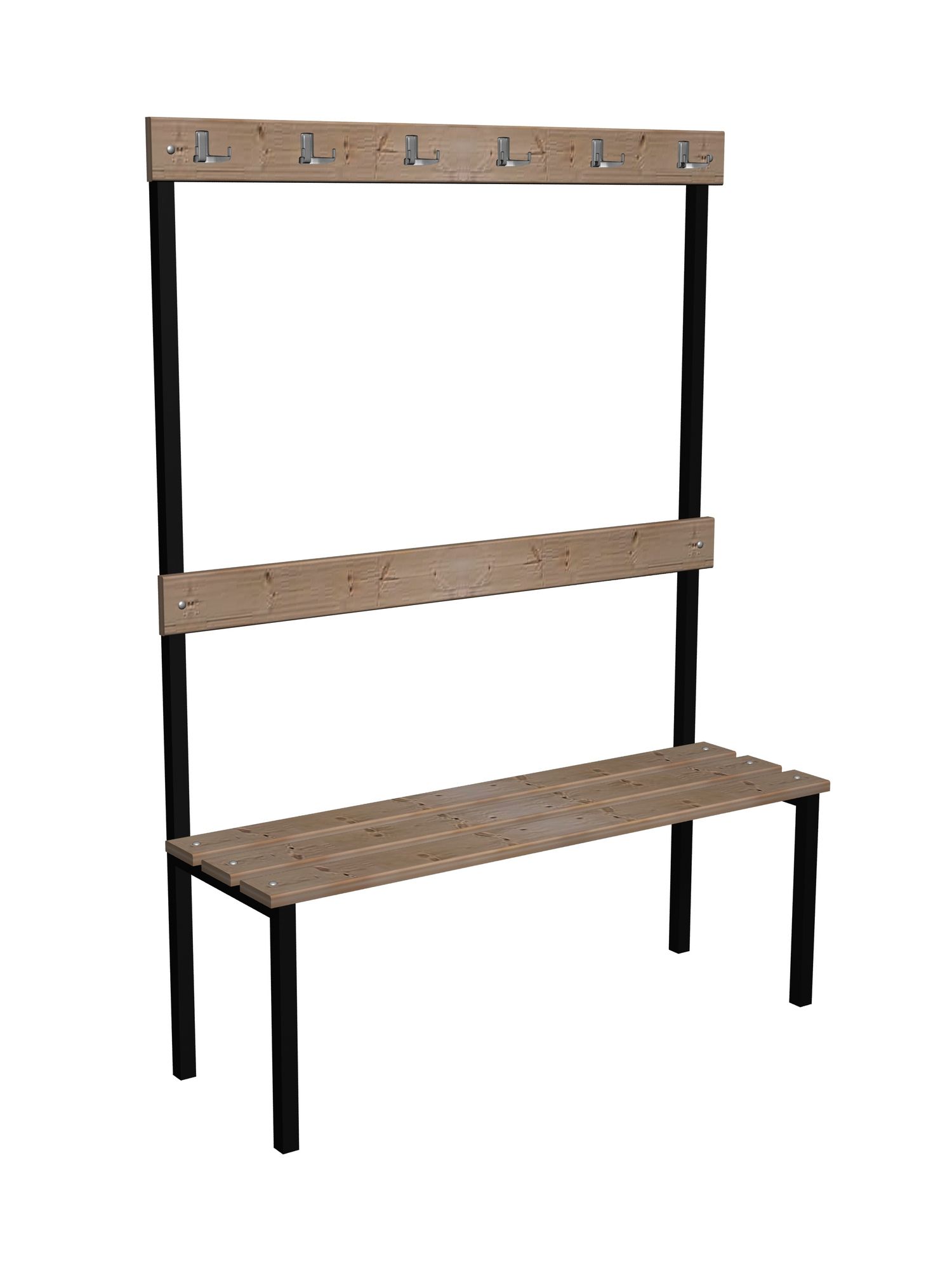 Ławka korytarzowa Premium 2-str. z oparciem, wieszakiem i półką Opis Bardzo mocna i wytrzymała ławka do szatni, na korytarze i do poczekalni. Dzięki zastosowaniu wporników pod siedziskiem z profila 30x30 znacznie zwiększona wytrzymałość ławki. Siedzisko do wyboru: Płyta laminowana o grubości 18 mm i szerokości 370 mm. Deski sosnowe o grubości 20 mm i szerokości 100 mm, potrójnie lakierowane. Mocowanie desek na mocne śruby zamkowe. Szerokość ławki 370 mm. Dostępna w długościach: 1 m i 1,2 m, 1,5 m, 1,8 m, 2,0 m. Stelaż Wykonany z profila 30x30x1,5 mm. Półka na buty z pręta fi 8 mm Na końcach nóg plastikowe zatyczki. Kolor stelaża do wyboru. Wyboru dokonujemy w konfiguracji modelu, która znajduje się powyżej. Kolorystyka Kolorystyka do wyboru według konfiguracji modelu Kolor płyty do wyboru. Wyboru dokonujemy w konfiguracji modelu, która znajduje się powyżej. Atesty Ławka posiada certyfikat dopuszczający do użytkownia w jednostkach oświatowych (certyfikat COBRABID). Terminy Towar na zamówienie. Produkcja około 3-6 tygodni. Gwarnacja 24 miesiące