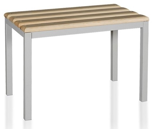 OPIS: | Ławeczka szatniowa wykonana jest z profilu zamkniętego o przekroju kwadratu 30x30. Siedzisko tworzą listwy drewniane pokryte lakierem bezbarwnym. | |