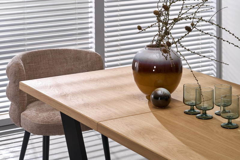 Przedstawiamy stół rozkładany MASSIVE 2, doskonały wybór dla tych, którzy cenią sobie funkcjonalność oraz elegancję w swoim wnętrzu. Jego unikalny design oraz staranne wykonanie sprawią, że stanie się centralnym punktem każdego salonu czy jadalni. Dzięki możliwości rozłożenia z długości 160 cm do 250 cm, z łatwością pomieści większą liczbę gości podczas rodzinnych spotkań czy przyjęć. Blat stołu wykonany jest z płyty fornirowanej w odcieniu dębu naturalnego, co nadaje mu ciepła i wyjątkowego charakteru. Krawędzie blatu wykończone są litego drewna, co zapewnia trwałość oraz elegancki wygląd. Stabilność konstrukcji zapewniają nogi wykonane ze stali malowanej proszkowo na czarno, co wprowadza nowoczesny akcent do klasycznej formy. Stół ten idealnie wkomponuje się zarówno w styl skandynawski, jak i industrialny. Wybierając MASSIVE 2, zyskujesz nie tylko estetykę, ale także praktyczność. W zestawie dostępne są opcjonalne przedłużki (wymiary: 45x90 cm - 2 szt.), które pozwalają na jeszcze większe możliwości aranżacyjne. Dzięki temu, stół dopasowuje się do Twoich potrzeb oraz ich zmieniającej się liczby, co czyni go idealnym rozwiązaniem dla każdej rodziny.