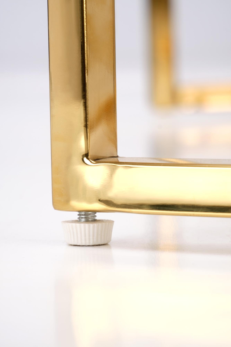 wymiary: 80/42 oraz 60/38 cm, zestaw 2 ław, materiał: spiek / stal nierdzewna, kolor: biały marmur / złoty