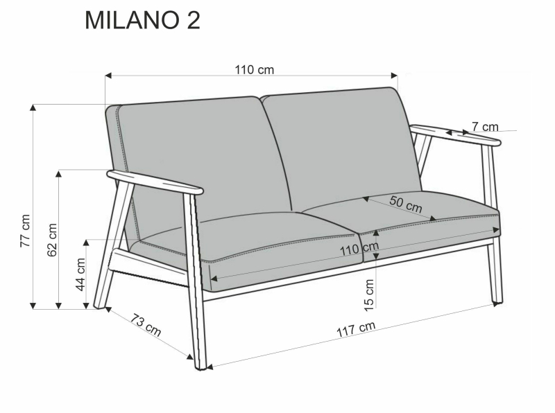 Przedstawiamy Sofę MILANO 2S – idealne połączenie komfortu, stylu i funkcjonalności, które wniesie elegancję do Twojego salonu! Ta dwuosobowa sofa o wymiarach 120 x 77 x 77 cm (szerokość x głębokość x wysokość całkowita) z wysokością siedziska wynoszącą 44 cm to doskonałe miejsce na relaks w towarzystwie bliskiej osoby. Sofa MILANO 2S obita jest wysokiej jakości tkaniną CASTEL w oliwkowym kolorze (CASTEL#39), która jest nie tylko przyjemna w dotyku, ale także trwała i łatwa w pielęgnacji. Solidna konstrukcja wykonana z litego drewna bukowego w ciepłym odcieniu ciemny orzech zapewnia stabilność i dodaje sofie wyrafinowanego charakteru. Jej prosta, a zarazem elegancka forma z charakterystycznymi drewnianymi podłokietnikami doskonale wpisuje się w różnorodne style aranżacyjne – od nowoczesnego po klasyczny. Ergonomicznie zaprojektowane siedzisko i oparcie gwarantują wysoki komfort użytkowania, idealny do popołudniowego wypoczynku czy wieczornego seansu filmowego. Sofa MILANO 2S jest częścią kolekcji, w której znajdziesz również fotel 1S oraz sofę 3S, co daje możliwość stworzenia spójnego i harmonijnego zestawu wypoczynkowego w Twoim salonie. Parametry produktu: