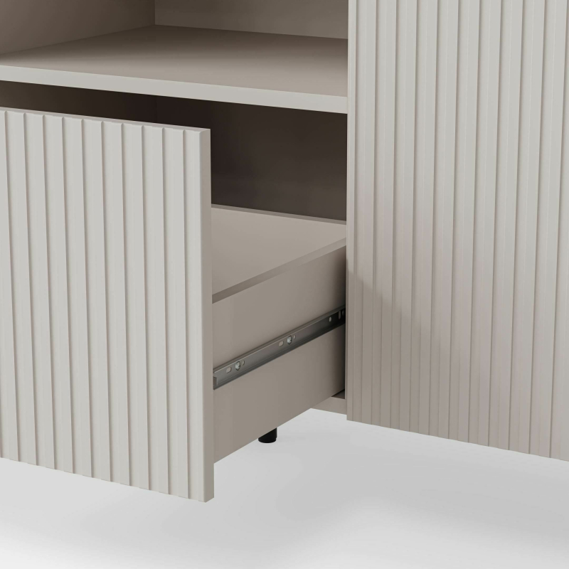 RANDOM 2 RTV-2 szafka RTV 180 cm kaszmir / orzech / czarny Szafka RTV RANDOM 2 RTV-2 – Nowoczesne Centrum Rozrywki w Większym Formacie z Kolekcją RANDOM! Przedstawiamy szafkę RTV RANDOM 2 RTV-2, która łączy w sobie stylowy design i funkcjonalność, idealnie dopasowując się do nowoczesnych salonów. Jej unikalne połączenie kolorystyczne kaszmiru, orzecha i czerni tworzy elegancki mebel, który stanie się centralnym punktem Twojej strefy rozrywki. Wyjątkowe Połączenie Kolorów i Detali: Szafka RTV RANDOM 2 RTV-2 charakteryzuje się nowoczesnym zestawieniem subtelnego kaszmiru i ciepłego odcienia orzecha, uzupełnionym o eleganckie, czarne nóżki. Jeden z frontów posiada ryflowaną strukturę w kolorze kaszmiru, dodając meblowi unikalnego charakteru i wizualnego zainteresowania. Funkcjonalność i Przestrzeń: Dzięki nowym wymiarom 180 cm szerokości, 40 cm głębokości i 52 cm wysokości, szafka RTV oferuje jeszcze większą przestrzeń na Twój telewizor oraz sprzęt audio-wideo. Zamknięte szafki pomogą ukryć kable i inne akcesoria, utrzymując porządek w Twoim salonie. Dodatkowe półki lub przegrody mogą zapewnić miejsce na dekoder, konsolę do gier czy piloty. Wysoka Jakość Materiałów: Szafka RTV została wykonana z wysokiej jakości materiałów: płyty meblowej okleinowanej oraz MDF okleinowanego, co gwarantuje jej trwałość i estetyczny wygląd na lata. Solidne nóżki z polipropylenu zapewniają stabilność i dodają nowoczesnego akcentu. Stwórz Kompletną Aranżację z Kolekcją RANDOM: Z przyjemnością informujemy, że w naszej ofercie dostępna jest pełna kolekcja mebli RANDOM. Odkryj różnorodność stylowych i funkcjonalnych brył w tej samej, unikalnej palecie kolorystycznej. Dzięki temu z łatwością zaaranżujesz spójne i eleganckie wnętrze w całym swoim domu! Specyfikacja Produktu: Nazwa: Szafka RTV RANDOM 2 RTV-2 Typ: Szafka RTV Wymiary: 180/40/52 cm (szerokość/głębokość/wysokość) Materiał: MDF okleinowany / płyta meblowa okleinowana / polipropylen Kolor: Kaszmir - orzech - czarny Gwarancja: 24 miesiące Ważne Informacje: Podane wymiary mogą się różnić o +/- 1-2%. Szafka RTV dostarczana jest w elementach do samodzielnego montażu. Instrukcja montażu znajduje się w przesyłce. Na produkt udzielamy 24-miesięcznej gwarancji. Zapraszamy do zakupu szafki RTV RANDOM 2 RTV-2 oraz do zapoznania się z całą kolekcją mebli RANDOM, aby stworzyć wymarzoną i harmonijną przestrzeń w Twoim domu!