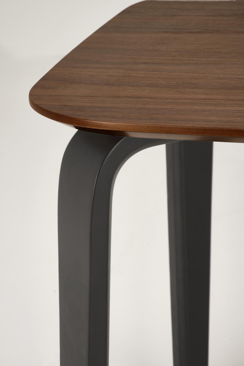 wymiary: 160/90/75/140 cm; materiał: MDF + okleina naturalna / drewno lite - kauczukowe, kolor: blat - orzechowy, nogi - czarmy