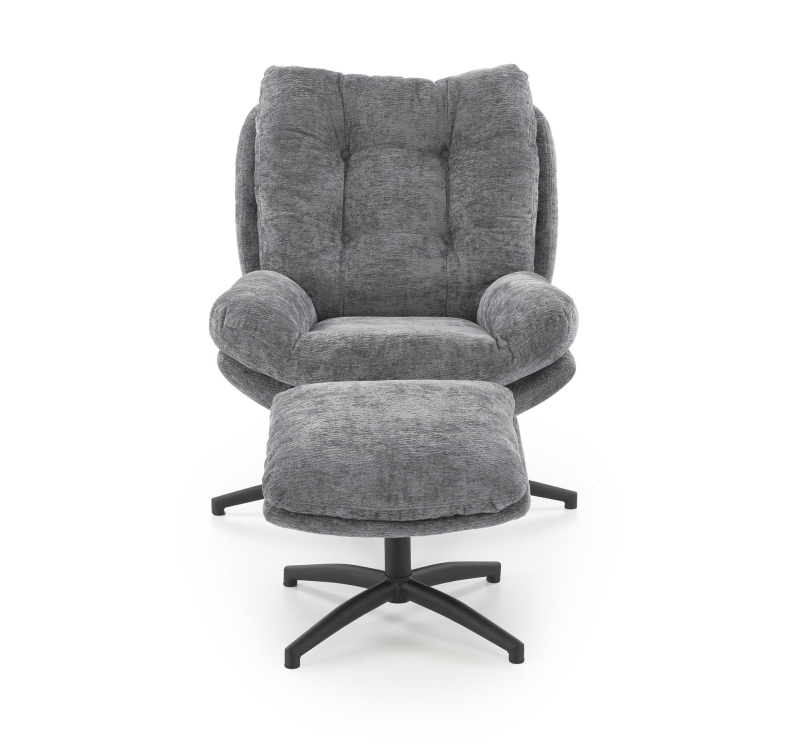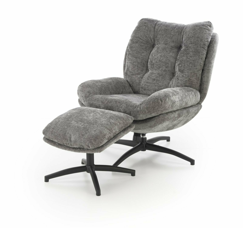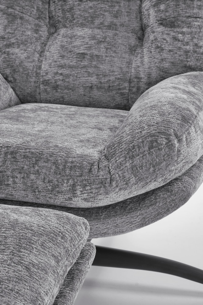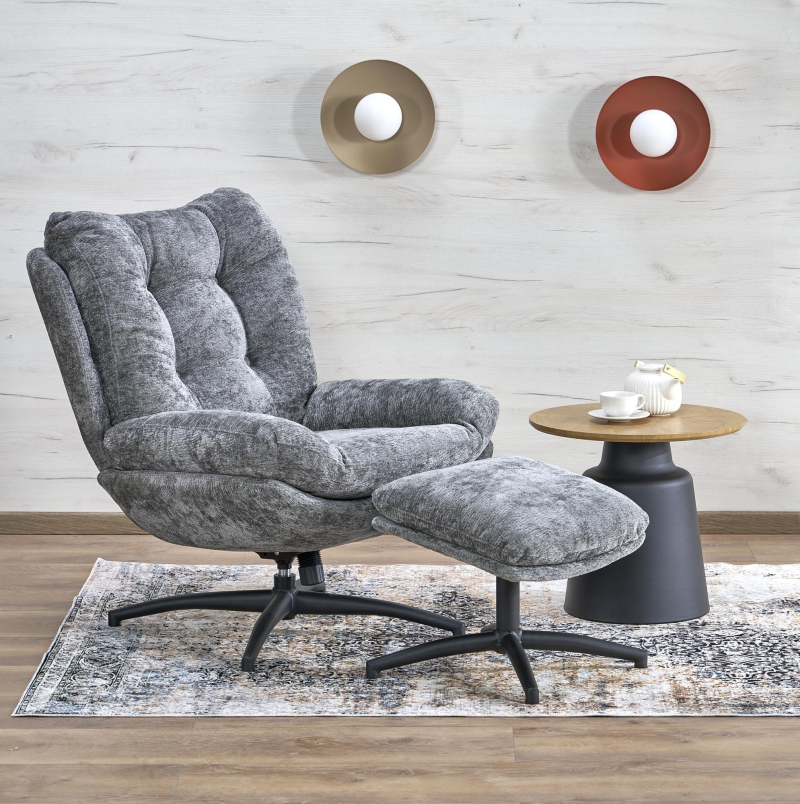 Odkryj relaks na nowym poziomie z fotelem PESTO w eleganckim popielatym odcieniu. Ten niezwykle komfortowy zestaw, składający się z fotela i dopasowanego podnóżka, stworzy idealne miejsce do wypoczynku w Twoim domu. Fotel PESTO zachwyca miękkim, tapicerowanym tkaniną siedziskiem i oparciem, które otulą Cię przyjemnym komfortem. Jego wymiary to około 76/92/96/48 cm (szerokość/głębokość/wysokość/wysokość siedziska), co zapewnia optymalne podparcie i wygodę użytkowania. W zestawie znajduje się również praktyczny podnóżek o wymiarach około 48/43/44 cm (szerokość/głębokość/wysokość), który pozwoli Ci w pełni się zrelaksować, unosząc nogi po długim dniu. Dodatkowym atutem fotela PESTO jest funkcja kołyski, która umili Ci chwile odpoczynku delikatnym ruchem. Zestaw wykonany jest z wysokiej jakości tkaniny w nowoczesnym popielatym kolorze, który z łatwością wkomponuje się w wiele aranżacji wnętrz. Informacje dodatkowe: