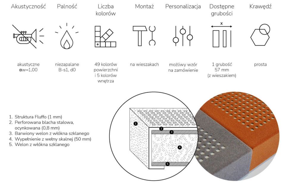 Perforowana powierzchnia umożliwia przenikanie fal dźwiękowych do wnętrza panelu.