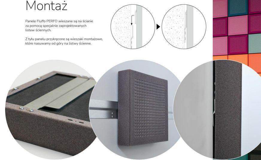 Zewnętrzna część paneli PERFO jest dostępna we wszystkich 49 kolorach.