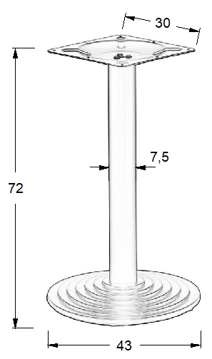 Podstawa do stolika SH-3050-2/W wysokość 72 cm, 44,5x44,5 cm - kolor biały PODSTAWOWE CECHY element dolny o wymiarach 44,5x44,5 cm element dolny wykonany z blachy o gr. 7 mm, malowanej proszkowo noga o średnicy 75 mm wykonana ze stali malowanej proszkowo, grubość ścianki 1,2 mm element górny wykonany z blachy tłoczonej 29x29 cm o gr. 3 mm element górny wyposażony w 8 otworów montażowych o średnicy 5 mm regulowane stopki podstawa skręcana, dostarczana w elementach do samodzielnego montażu gwarancja 24 miesiące Wymiary: