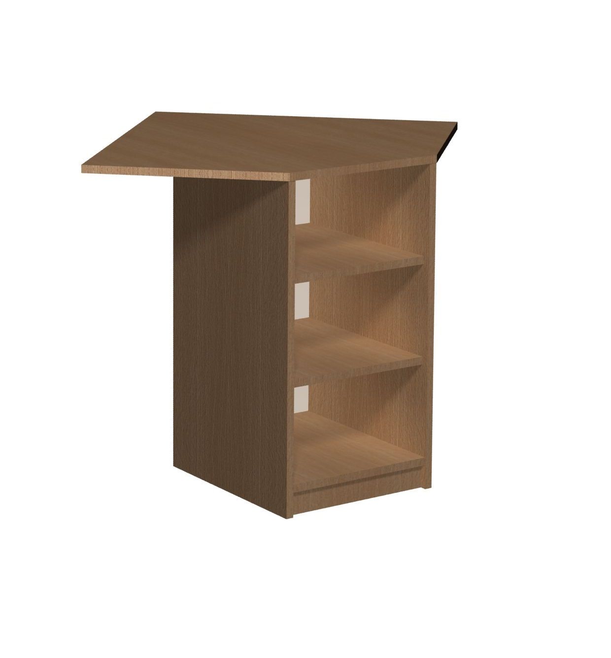 Szafka przedszkolna PRIMO 131 bez nadstawki Dane techniczne Szafka narożna posiadająca 4 otwarte półki. Wysokości półek: skrajne 227 mm, wewnętrzne 217 mm. Wymiary szafki: 1033x800x800 mm (wys. x szer.x gł.) Kolorystyka płyty meblowej: Kolorystyka płyty meblowej do wyboru. Wyboru dokonujemy w konfiguracji modelu, która znajduje się powyżej. Certyfikat Regał posiada certyfikat dopuszczający do użytkownia w jednostkach oświatowych (certyfikat COBRABID). Terminy Towar na zamówienie. Produkcja około 3-6 tygodni. Gwarancja 24 miesiące