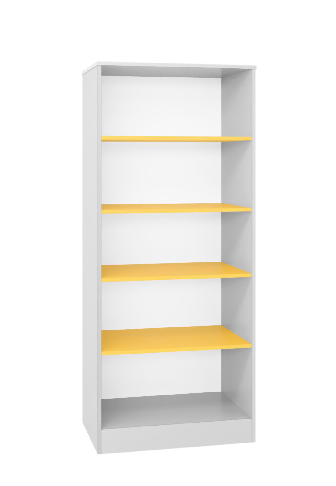 Wymiary (WxSxG) 1850x800x400 mm, wykonany z płyty laminowanej 18 mm. Tył biała płyta HDF. Półki kolorowe - kolor do wyboru spośród 5 kolorów: niebieski, zielony, żółty, pomarańczowy lub czerwony. | |