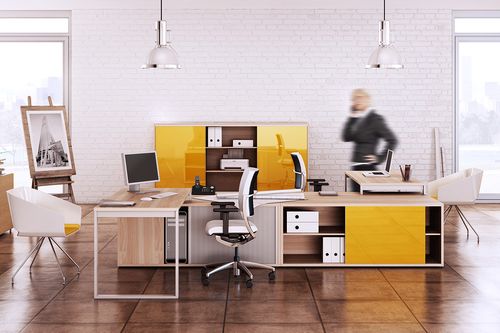 Przykładowe aranżacje w systemie mebli biurowych EVRO: