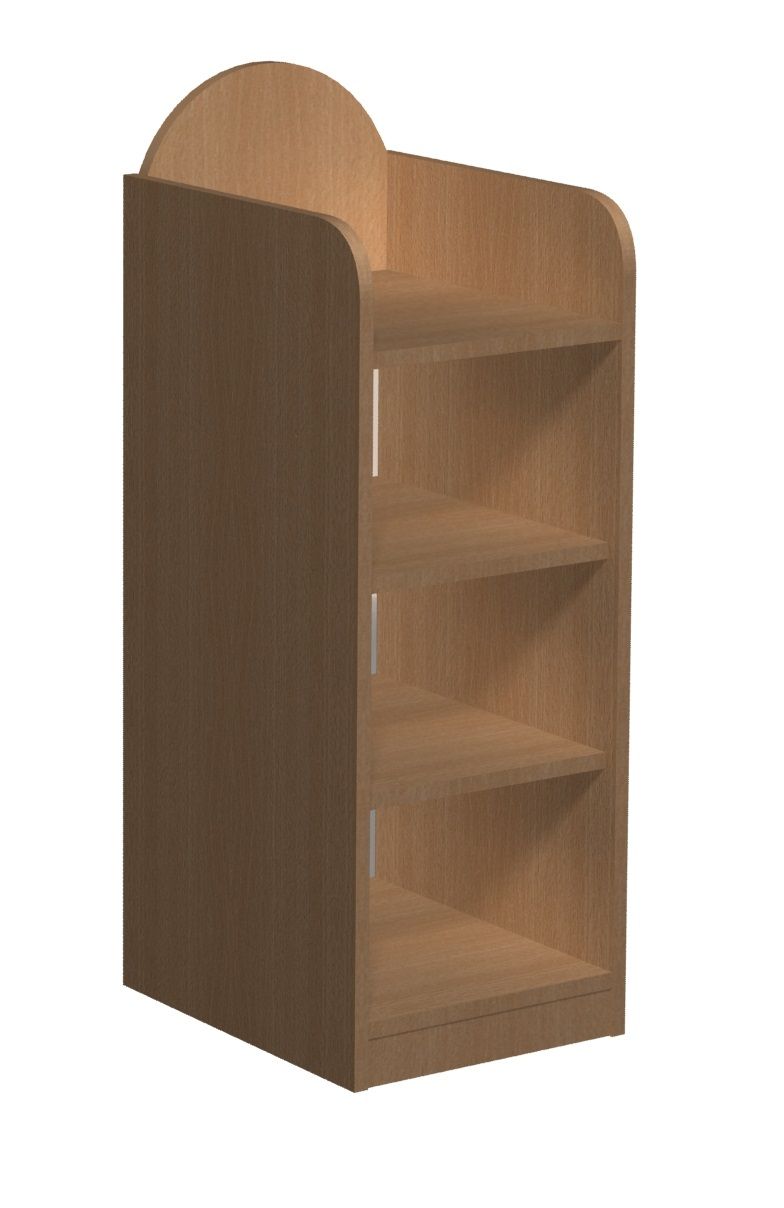 Szafka przedszkolna PRIMO 131 bez nadstawki Dane techniczne Szafka narożna posiadająca 4 otwarte półki. Wysokości półek: skrajne 227 mm, wewnętrzne 217 mm. Wymiary szafki: 1033x800x800 mm (wys. x szer.x gł.) Kolorystyka płyty meblowej: Kolorystyka płyty meblowej do wyboru. Wyboru dokonujemy w konfiguracji modelu, która znajduje się powyżej. Certyfikat Regał posiada certyfikat dopuszczający do użytkownia w jednostkach oświatowych (certyfikat COBRABID). Terminy Towar na zamówienie. Produkcja około 3-6 tygodni. Gwarancja 24 miesiące