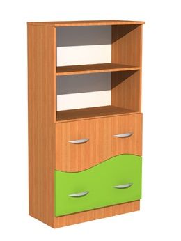 Regał z szufladami Fala 32 Regał z szufladami Fala 32. Wymiar (WxSxG) 1500x800x400 mm. Wykonana z płyty laminowanej 18mm. Fronty szuflad w kształcie fali, dwa fronty wykonane są z płyty kolorowej - kolor do wyboru. Regał posiada 4 pojemne szuflady. Metalowe uchwyty. Kolorystyka Kolorystyka do wyboru według konfiguracji modelu Kolor płyty meblowej do wyboru. Wyboru dokonujemy w konfiguracji modelu, która znajduje się powyżej. Atesty Szafka posiada certyfikat dopuszczający do użytkowania w jednostkach oświatowych (certyfikat COBRABID). Gwarancja 24 miesiące Terminy Towar na zamówienie. Produkcja około 3-6 tygodni.