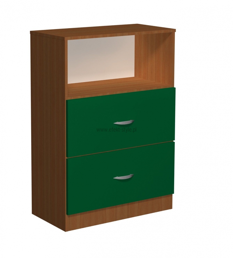 Regał z szufladami Fala 32 Regał z szufladami Fala 32. Wymiar (WxSxG) 1500x800x400 mm. Wykonana z płyty laminowanej 18mm. Fronty szuflad w kształcie fali, dwa fronty wykonane są z płyty kolorowej - kolor do wyboru. Regał posiada 4 pojemne szuflady. Metalowe uchwyty. Kolorystyka Kolorystyka do wyboru według konfiguracji modelu Kolor płyty meblowej do wyboru. Wyboru dokonujemy w konfiguracji modelu, która znajduje się powyżej. Atesty Szafka posiada certyfikat dopuszczający do użytkowania w jednostkach oświatowych (certyfikat COBRABID). Gwarancja 24 miesiące Terminy Towar na zamówienie. Produkcja około 3-6 tygodni.
