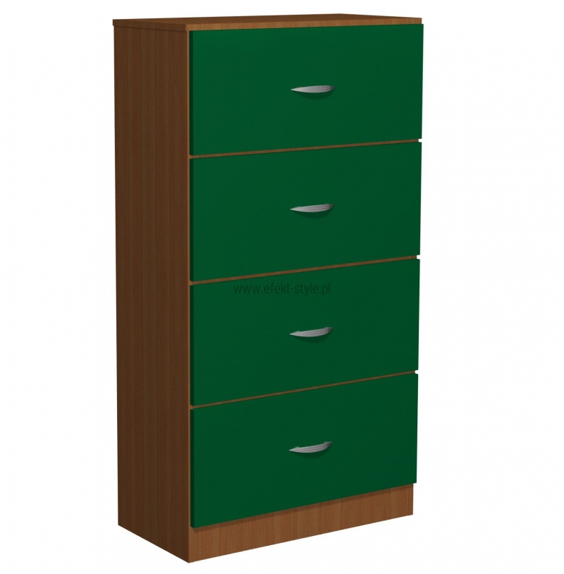 Regał z szufladami Fala 32 Regał z szufladami Fala 32. Wymiar (WxSxG) 1500x800x400 mm. Wykonana z płyty laminowanej 18mm. Fronty szuflad w kształcie fali, dwa fronty wykonane są z płyty kolorowej - kolor do wyboru. Regał posiada 4 pojemne szuflady. Metalowe uchwyty. Kolorystyka Kolorystyka do wyboru według konfiguracji modelu Kolor płyty meblowej do wyboru. Wyboru dokonujemy w konfiguracji modelu, która znajduje się powyżej. Atesty Szafka posiada certyfikat dopuszczający do użytkowania w jednostkach oświatowych (certyfikat COBRABID). Gwarancja 24 miesiące Terminy Towar na zamówienie. Produkcja około 3-6 tygodni.